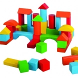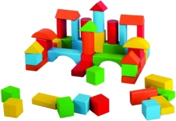Setul de construcție din lemn, în culori vii, conține 50 de cuburi de înaltă calitate, finisate atent, în forme diferite pentru micii constructori. Susține motricitatea fină, creativitatea și imaginația spațială. Fabricat din lemn sigur, respectă normele UE și este potrivit pentru copii de la 2 ani.