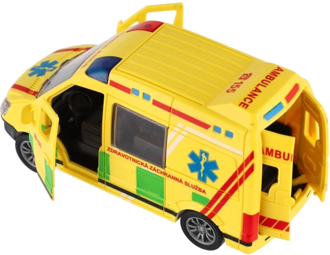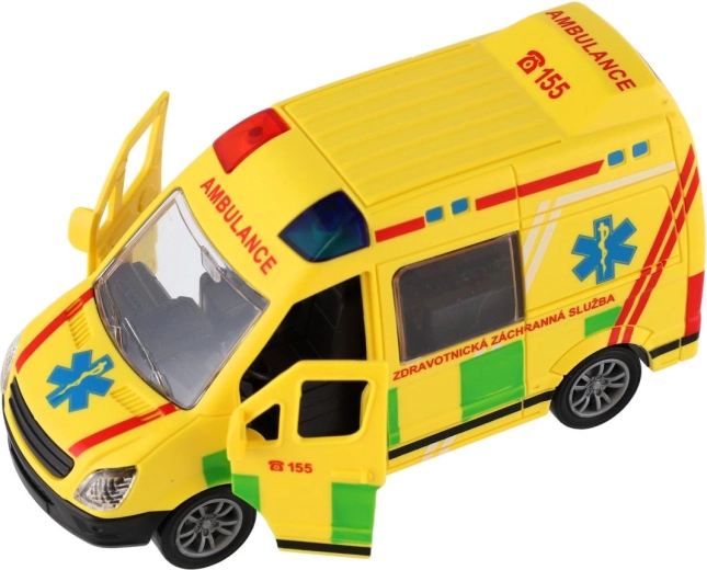- Ambulanță din plastic cu mecanism inerțial