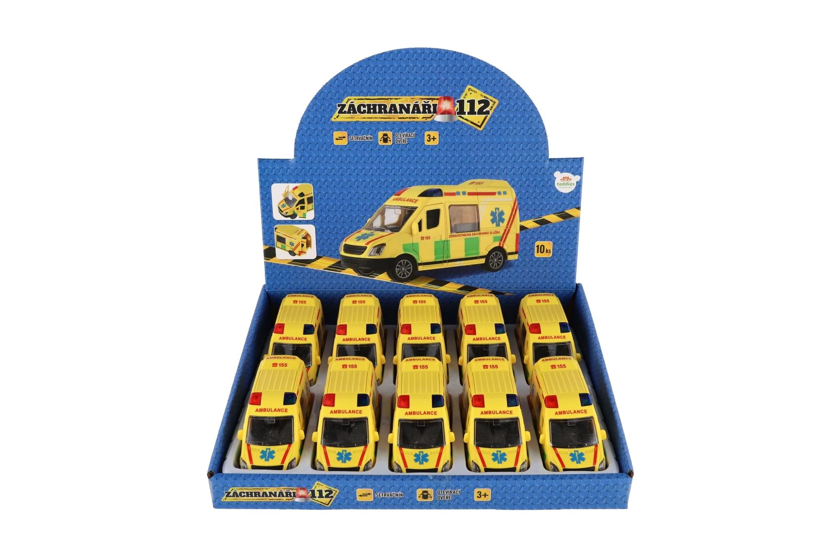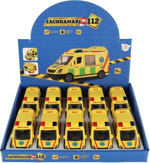 Misiunea de salvare poate începe! Această ambulanță din plastic cu lungimea de 12 cm îi va încânta pe toți micii salvatori. Datorită mecanismului inerțial, este suficient să tragi mașinuța înapoi, iar aceasta se va porni rapid înainte de una singură. Designul realist cu inscripția Ambulance și motivele serviciului medical de urgență fac din acest model un accesoriu grozav pentru colecția copiilor. Pachetul conține 10 bucăți într-o cutie practică.