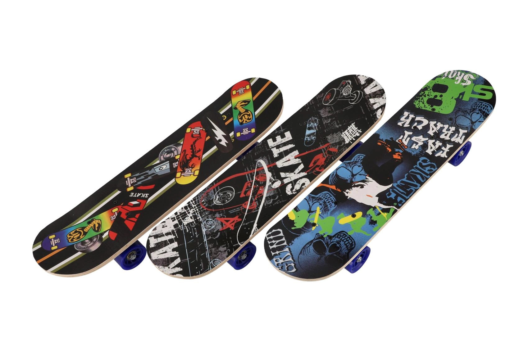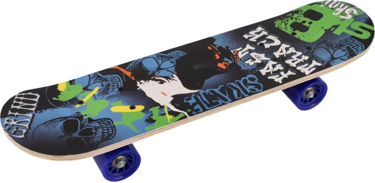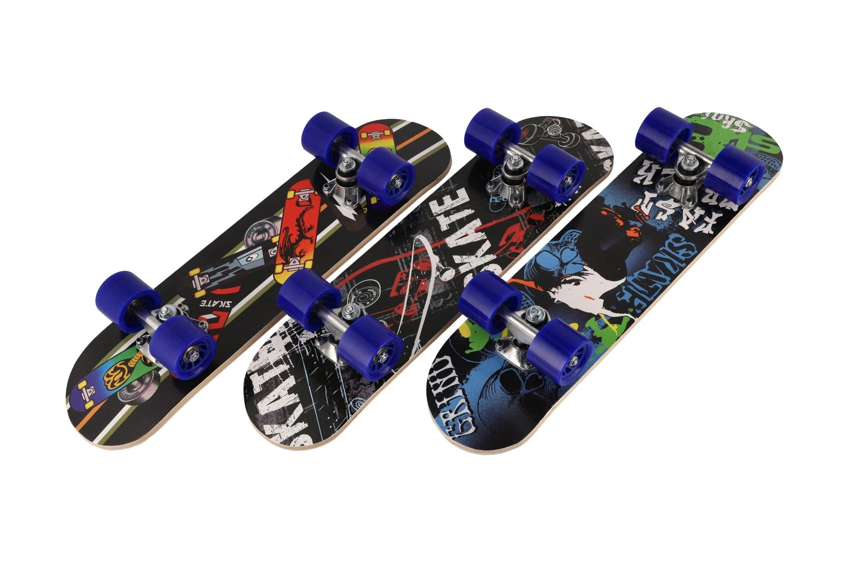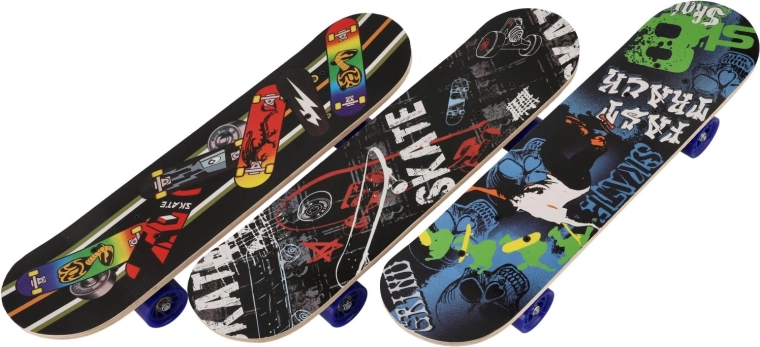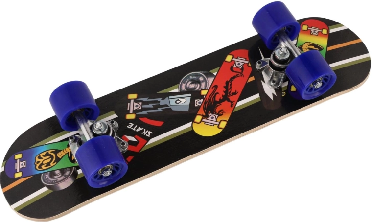 Skateboard ușor și rezistent pentru copii, din lemn de arțar, cu lungime de cca 60 cm, o alegere excelentă pentru micii rideri. Oferă construcție solidă și stabilă, camioane din aluminiu și roți PU de calitate pentru o rulare lină și silențioasă. Datorită dimensiunii compacte, este ușor de controlat și potrivit pentru începători și copii mai avansați. Greutatea maximă suportată este de 60 kg, iar grafica atrăgătoare este disponibilă în 3 variante de culoare.