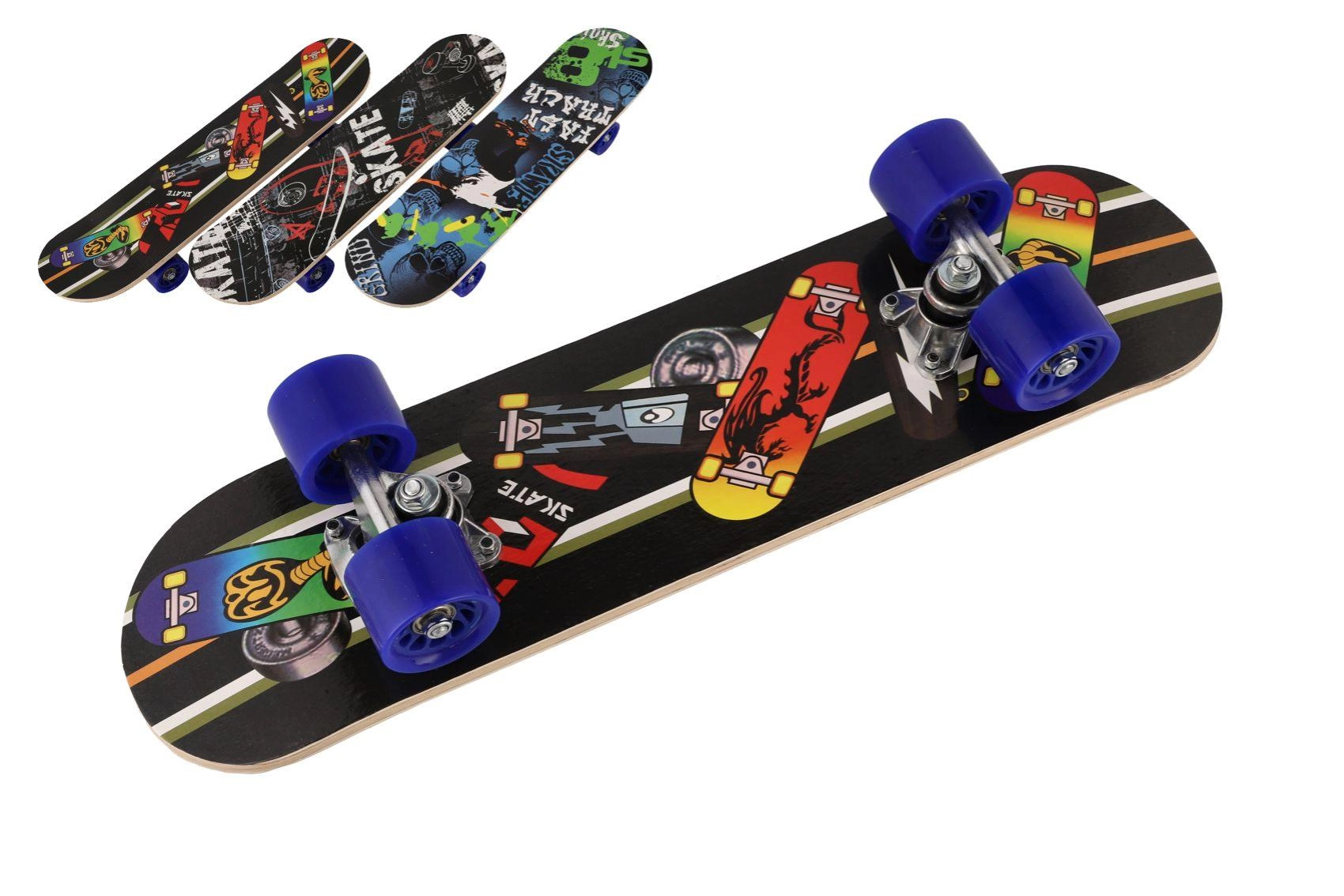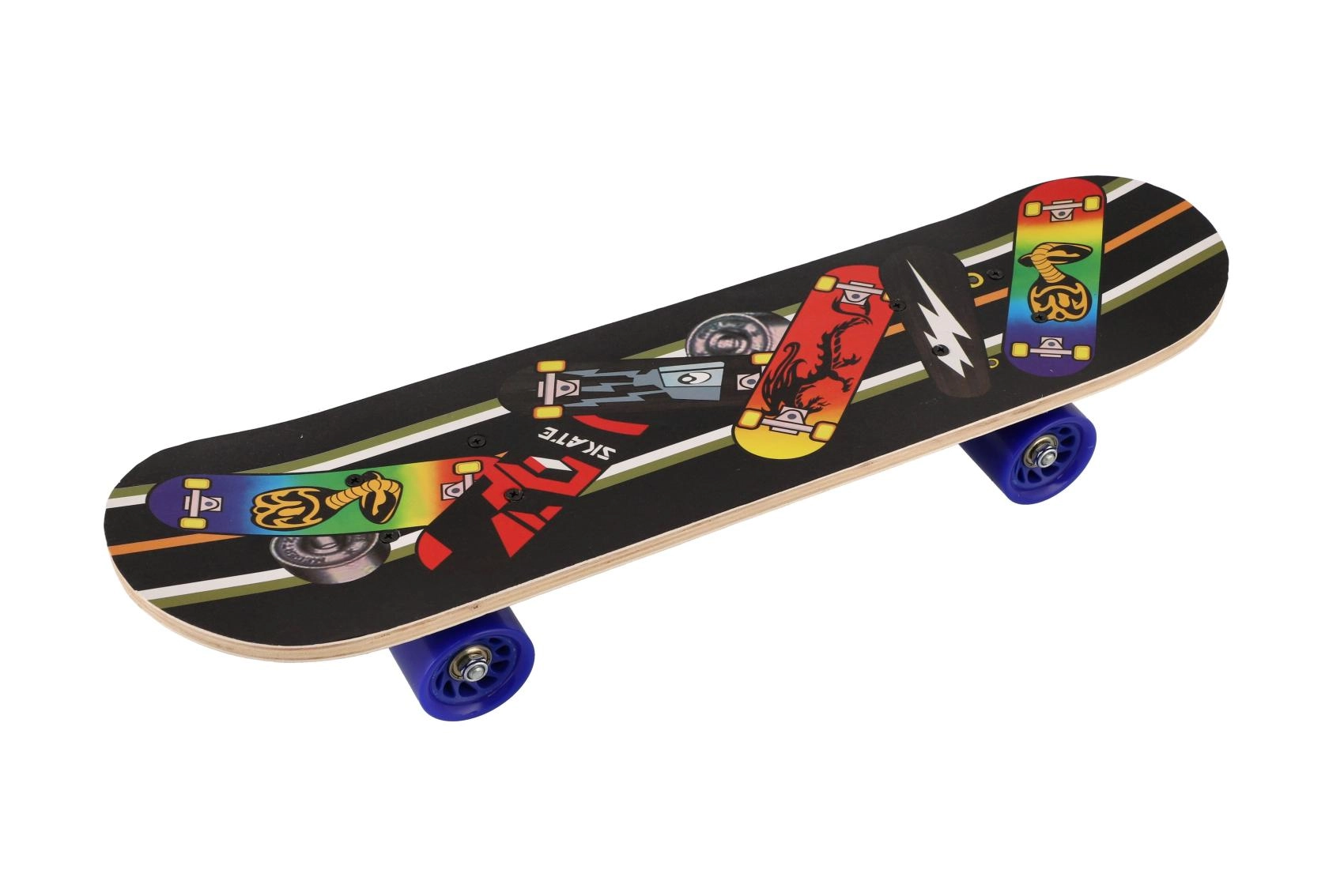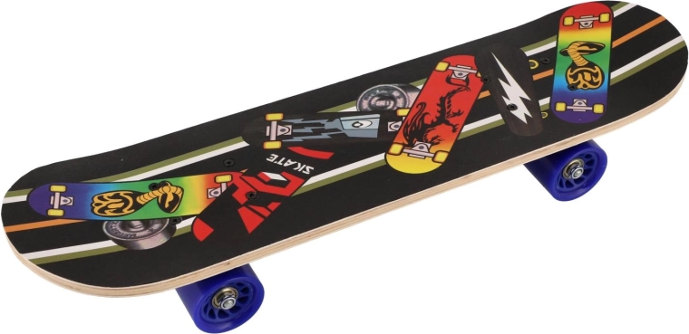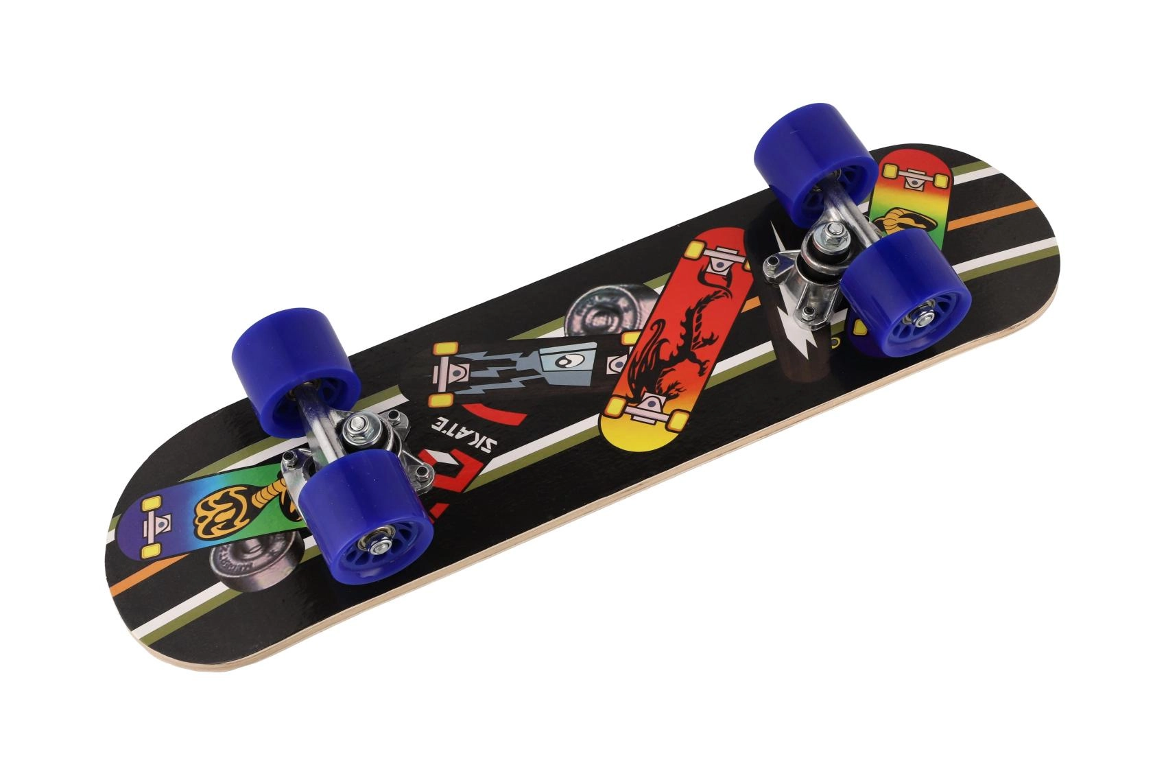 Skateboard ușor și rezistent pentru copii, din lemn de arțar, cu lungime de cca 60 cm, o alegere excelentă pentru micii rideri. Oferă construcție solidă și stabilă, camioane din aluminiu și roți PU de calitate pentru o rulare lină și silențioasă. Datorită dimensiunii compacte, este ușor de controlat și potrivit pentru începători și copii mai avansați. Greutatea maximă suportată este de 60 kg, iar grafica atrăgătoare este disponibilă în 3 variante de culoare.