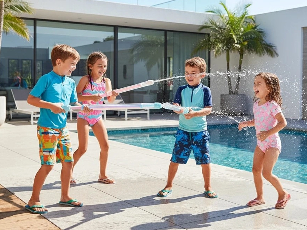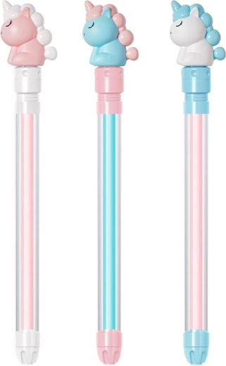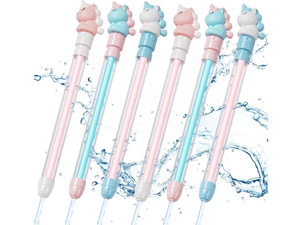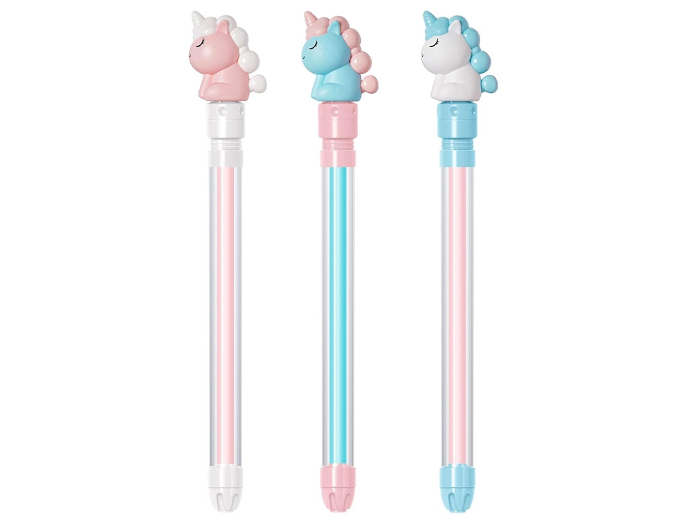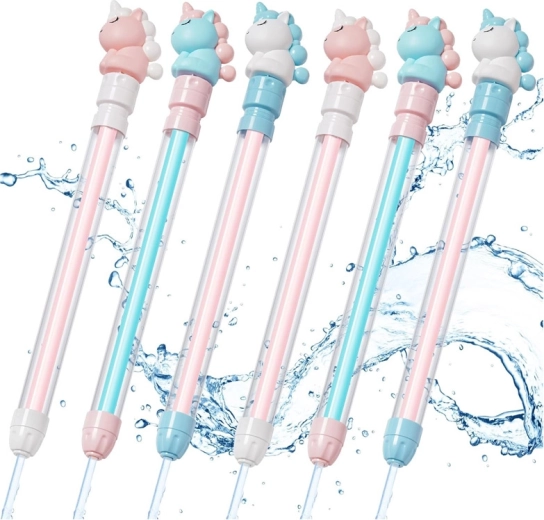 Construcția ușoară din plastic, prinderea confortabilă și motivul jucăuș cu unicorn susțin mișcarea naturală și coordonarea. Pistolul este potrivit și pentru copiii mai mici – manevrarea este intuitivă, fără umplerea complicată a rezervorului. Aspectul și culorile pot varia și sunt expediate aleator dacă nu se specifică o preferință.