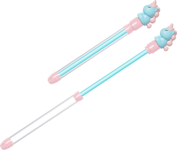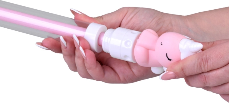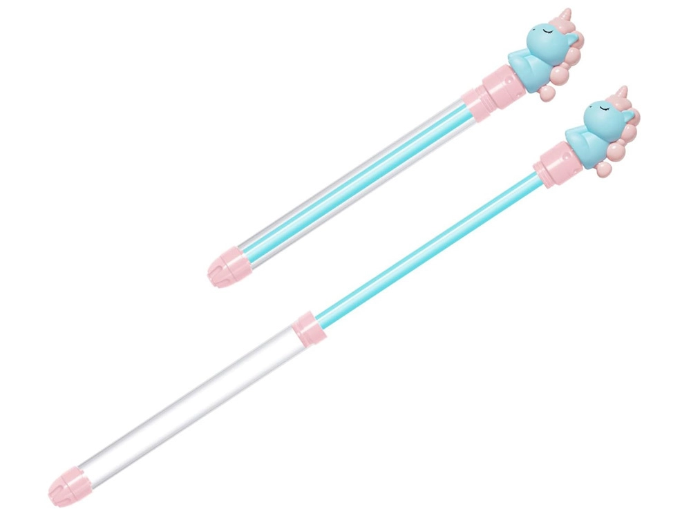 Pistolul cu apă cu unicorn este jucăria ideală pentru zilele toride. Corpul transparent arată nivelul apei, iar mecanismul cu pompare funcționează ca o seringă clasică – este suficient să scufunzi vârful în apă, să tragi de mâner și apoi să împingi pentru un jet puternic. Astfel, copiii au un accesoriu simplu și amuzant pentru lupte cu apă la piscină, în grădină sau la lac.