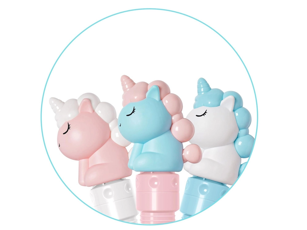 Culorile pastel și capul jucăuș de unicorn atrag privirea din prima. Aspectul stilat accentuează atmosfera de vară și îi încântă pe micii iubitori ai fanteziei.
