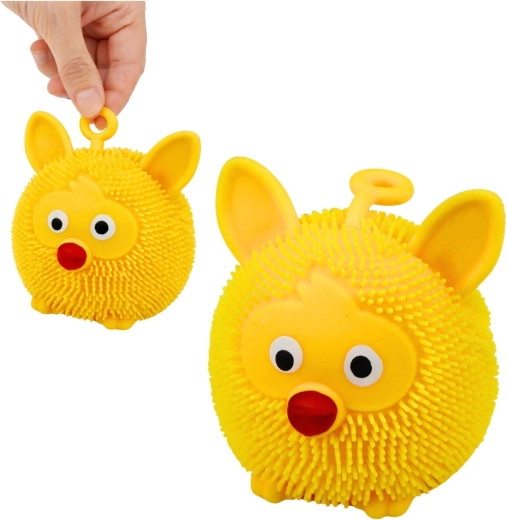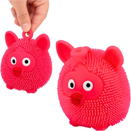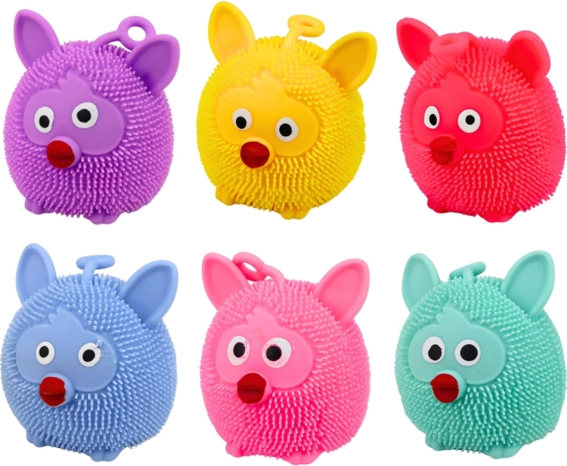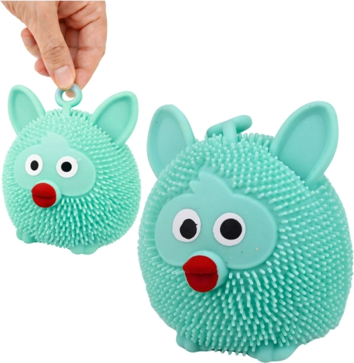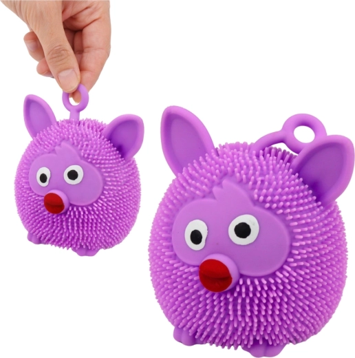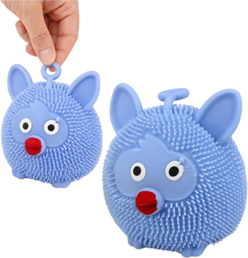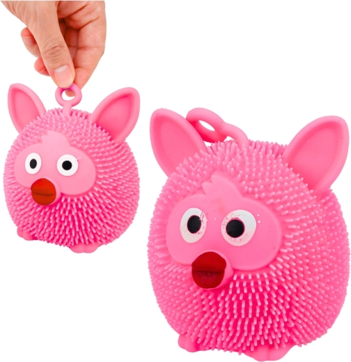 Jucărie senzorială distractivă tip gniotek în formă de animal, din material moale și elastic, pentru copii și adulți. La sărit sau strângere, se aprinde intermitent lumina LED colorată, în timp ce mici proeminențe oferă o stimulare tactilă plăcută și alina stresul. Dimensiuni compacte, buclă practică pentru ținut sau agățat și mix de culori livrat aleatoriu.