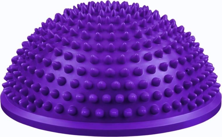 Semisfera mov, cu diametrul de 16 cm, este un accesoriu universal pentru antrenamentul echilibrului, stabilizarea zonei centrale a corpului și stimularea senzomotorie. Proeminențele conice masează ușor tălpile, susțin circulația și activează mușchii bolții plantare. Este ideală pentru copii și adulți – pentru acasă, grădinițe, școli și cabinete de fizioterapie.