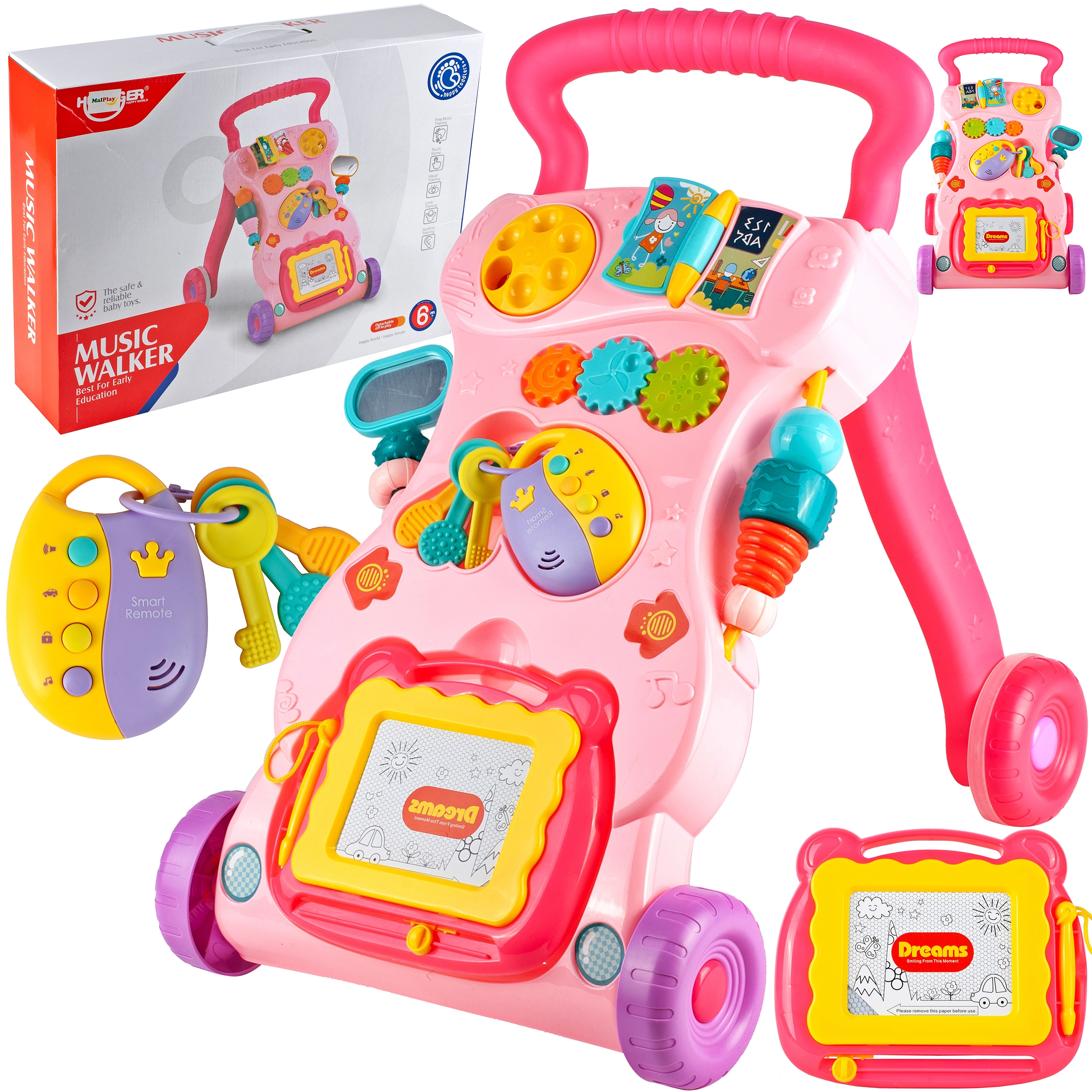 Susțineți primii pași ai copilului cu un premergător care îmbină siguranța, distracția și învățarea. Designul roz, tabla interactivă detașabilă și cheițele invită la explorare, în timp ce cele 12 melodii motivează la mișcare. Datorită dimensiunilor compacte, este ușor de folosit acasă și în călătorii.