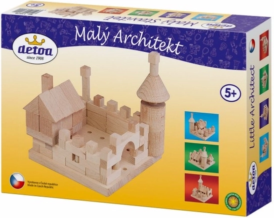 Setul de construcție din lemn Detoa Micul arhitect este alegerea ideală pentru micii constructori. Datorită diferitelor forme și dimensiuni ale pieselor, copiii pot crea nenumărate variații de construcții și modele. Baza cu orificii găurite și tijele facilitează asamblarea și susțin precizia și răbdarea.