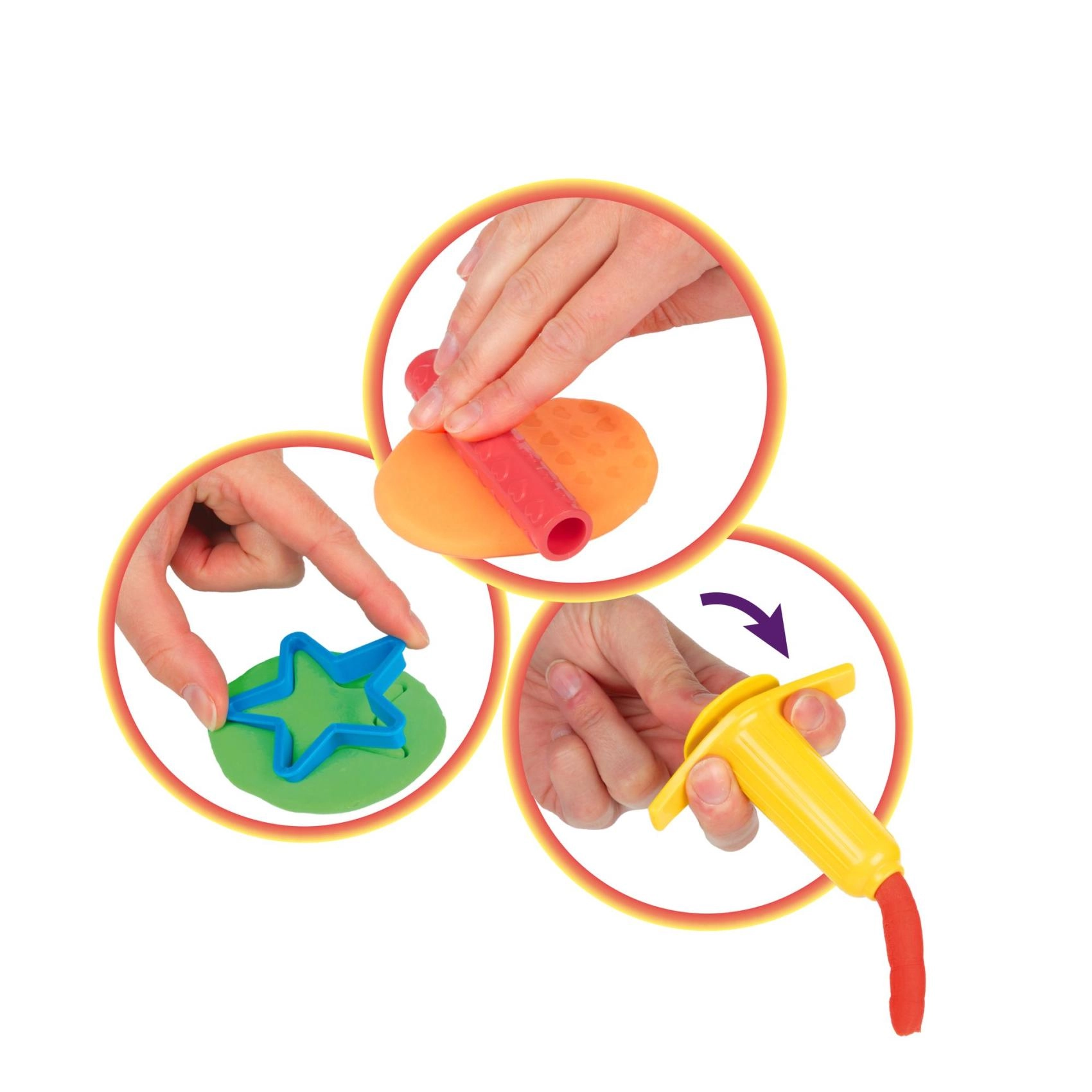 Cu rola, formele de decupat și extruderul, copiii creează cu ușurință detalii, șnururi și forme fantastice.