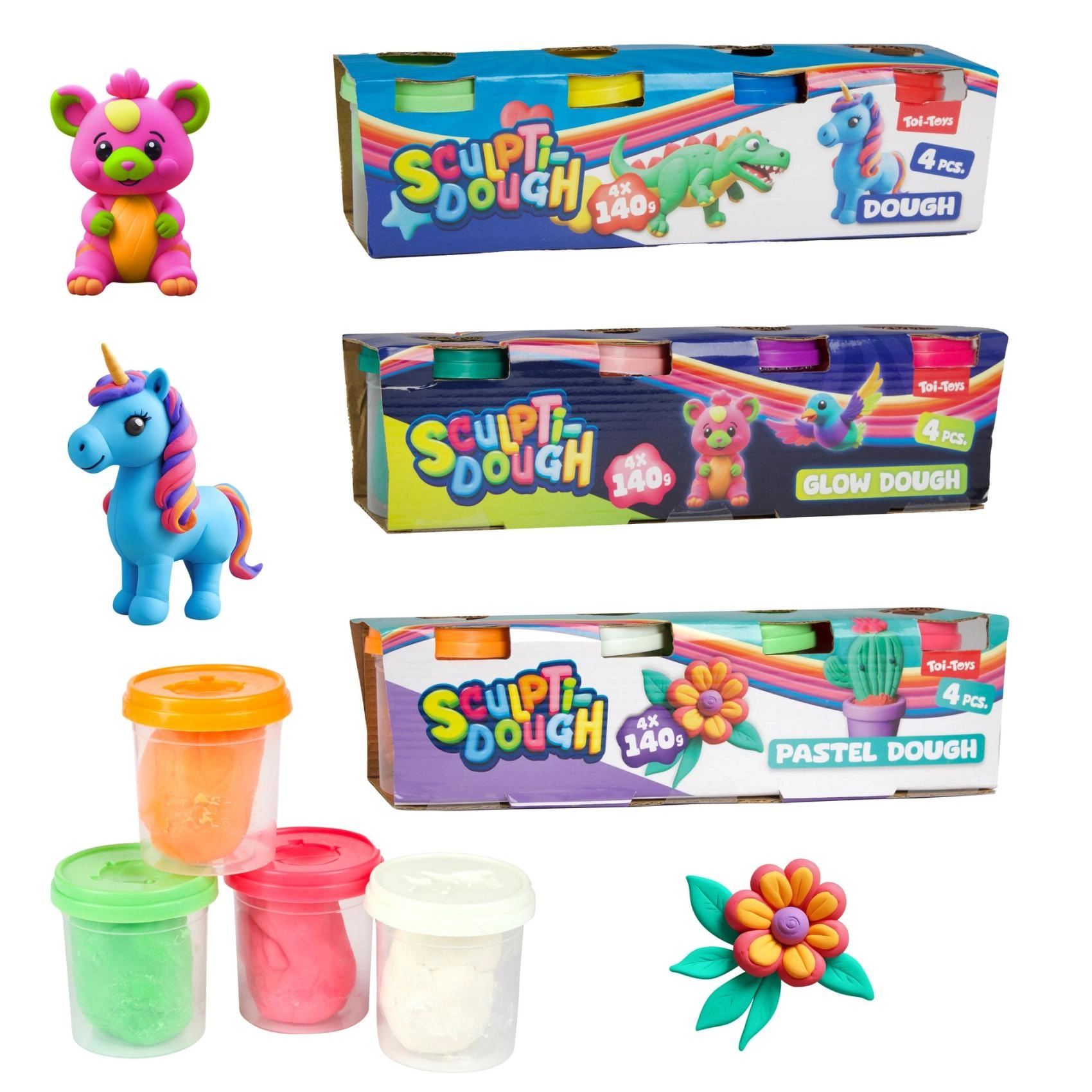 Plastilina colorată susține imaginația și creativitatea copiilor. În set găsiți 4 pahare a câte 140 g, ideale pentru modelarea formelor, personajelor și decorațiunilor. Puteți alege dintre trei variante – clasică, pastel sau plastilină fosforescentă, care strălucește în întuneric și adaugă și mai multă distracție activităților creative.