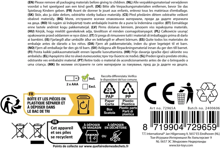 Jucăria este proiectată pentru mâini mici – formă ergonomică și control simplu pentru prindere confortabilă și apăsarea facilă a butoanelor. Dimensiunile compacte sunt potrivite atât pentru acasă, cât și pentru călătorii, iar construcția robustă din plastic garantează rezistență la joaca de zi cu zi.
