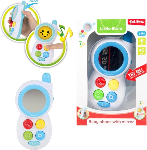Un telefon distractiv pentru cei mici, cu butoane colorate, sunete și melodii vesele și o oglindă mare pentru descoperirea propriului reflex. Datorită formei ergonomice și controlului ușor, se ține perfect chiar și în mânuțe mici și sprijină dezvoltarea senzorială a copilului.