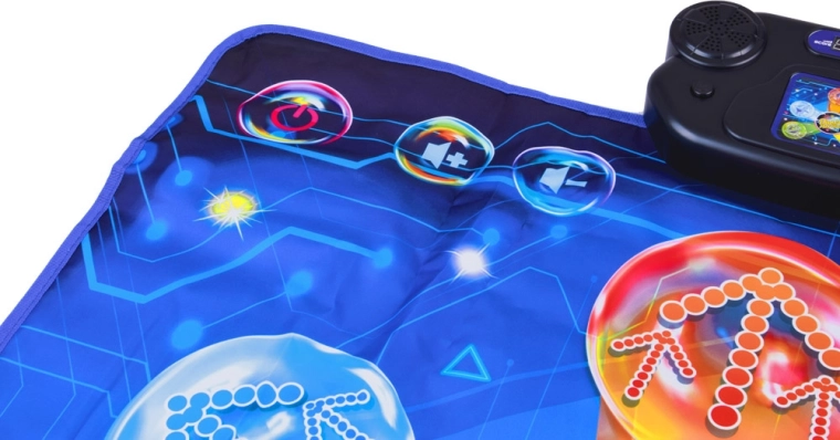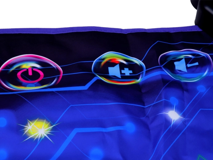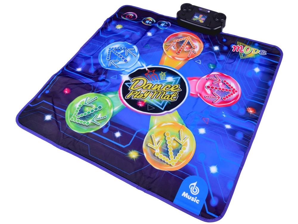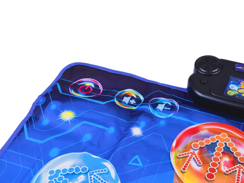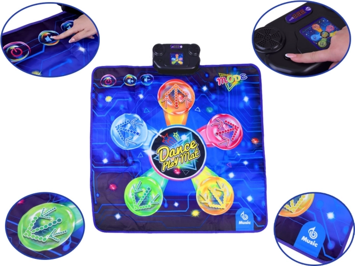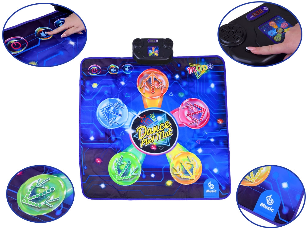 Covorașul de dans transformă orice cameră într-o mică scenă. Copiii sar pe zonele iluminate, reacționează la muzică și lumini și adună puncte în provocările de joc. Control ușor prin panoul cu butoanele START, MODE, MUSIC și volum (V-/V+) permite comutarea rapidă între melodii și moduri.