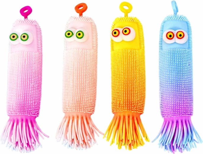 Un gniotek senzorial distractiv în forma unei creaturi colorate cu țepi moi oferă eliberare imediată a stresului, stimulare tactilă și efecte luminoase LED la ricoșeu. Datorită materialului moale și elastic, îl poți strânge, întinde și ricoșa, iar bucla superioară facilitează prinderea și agățarea.