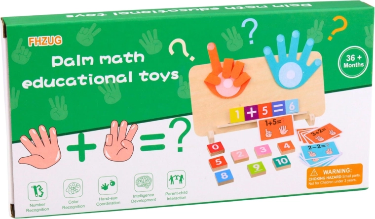 Acest instrument educațional de calitate din lemn îi învață pe copii să calculeze prin vizualizare pe degete. Palmele rotative reprezintă clar numerele, în timp ce piesele colorate din lemn cu cifre și semne matematice permit compunerea de exerciții simple. Sunt incluse și cartonașe duble cu sarcini pentru creșterea treptată a nivelului de dificultate.