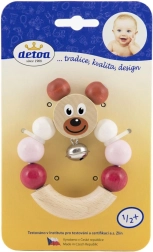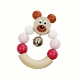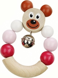 Zornăitoarea adorabilă din lemn, cu ursuleț roz, va încânta orice bebeluș. Clopoțelul integrat sună delicat, zornăitoarea este foarte ușoară și datorită dimensiunilor compacte 7 × 9 cm se ține excelent în mânuțele mici. Produsul îndeplinește cerințele stricte ale UE privind siguranța jucăriilor și deține certificatul Jucărie sigură.