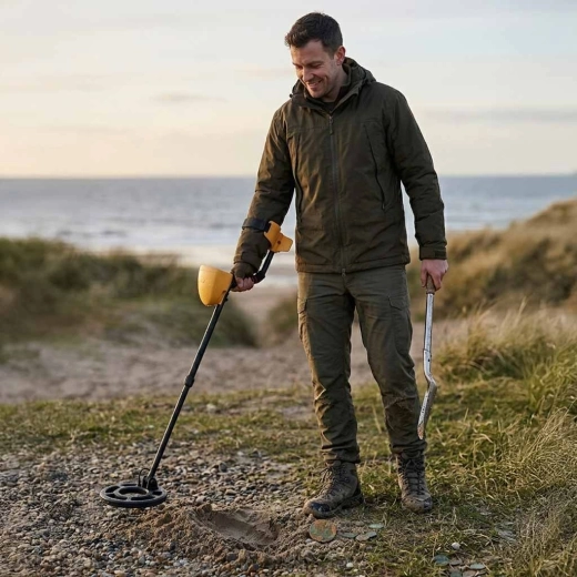 Bobina de căutare rezistă la apă pentru explorare în apă puțin adâncă. Tija telescopică se adaptează înălțimii utilizatorului și îmbunătățește ergonomia în timpul căutărilor mai lungi.