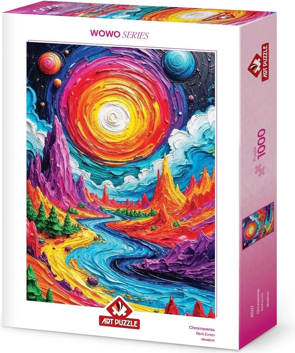 Descoperă lumea colorată a asamblării cu puzzle-ul Chromaverse de 1000 de piese, care, după completare, creează o imagine impresionantă cu dimensiunile de 48 × 68 cm. O alegere ideală pentru relaxare, antrenarea concentrării și bucuria pieselor care se potrivesc perfect.