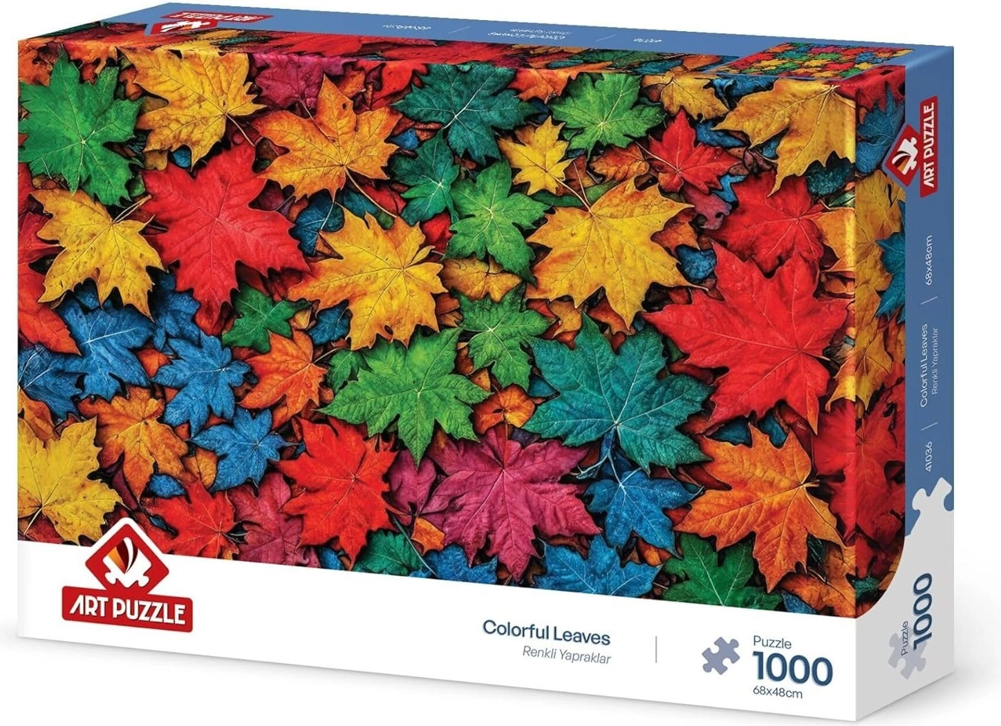Bucurați-vă de relaxare cu un frumos puzzle cu motiv de frunze colorate. Asamblarea din 1000 de piese oferă o provocare plăcută, iar după finalizare rezultă o imagine decorativă cu dimensiunea de 68 × 48 cm, ideală pentru înrămare sau expunere.