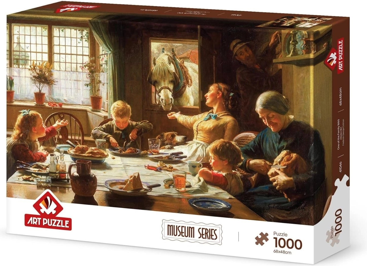 Descoperă puzzle-ul de calitate din seria Museum Series cu motivul Unul din familie, din 1000 de piese. Tăierea precisă și cartonul rezistent asigură o asamblare plăcută și îmbinarea exactă a pieselor. Puzzle-ul final are dimensiunea de aproximativ 68 × 48 cm, iar producătorul oferă serviciul de trimitere a piesei lipsă.