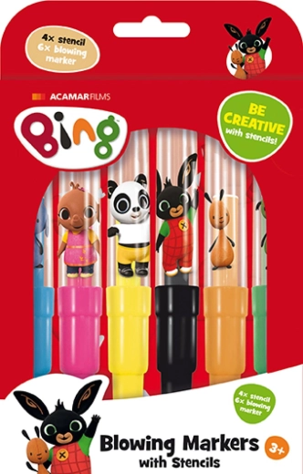 Acest set creativ este o alegere excelentă pentru micii artiști care iubesc personajele de poveste. Datorită suflatului simplu prin carioci, copiii vor realiza tranziții frumoase de culori și ilustrații originale cu șabloanele cu motive IEPURAȘUL BING. Totul este depozitat într-o cutie practică, astfel încât setul este potrivit și pentru călătorii.