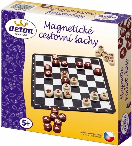 Șahul magnetic de călătorie Detoa oferă distracție grozavă pentru întreaga familie. Setul conține o tablă metalică de șah cu dimensiunile 16,5x16,5 cm, care menține piesele în siguranță datorită substratului magnetic. Astfel, nu trebuie să vă faceți griji că piesele se vor mișca în timpul jocului.
