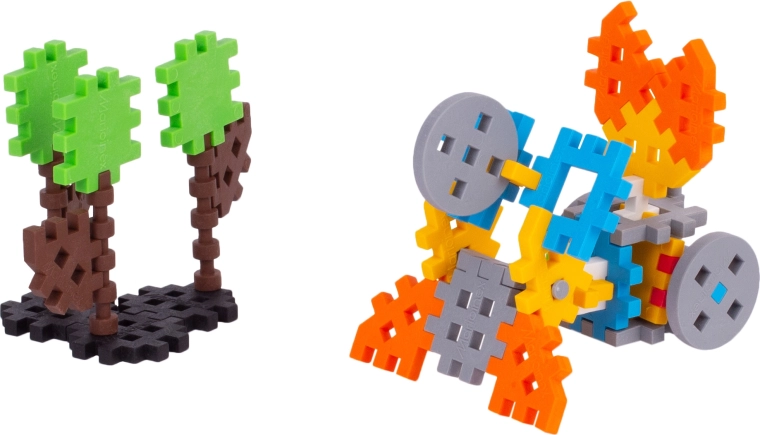 Piesele sigure, moi și colorate sunt proiectate pentru mâini mici, astfel încât construcția să fie confortabilă și intuitivă. Copiii pot crea vehicule, personaje, copaci și structuri originale – singura limită este imaginația.