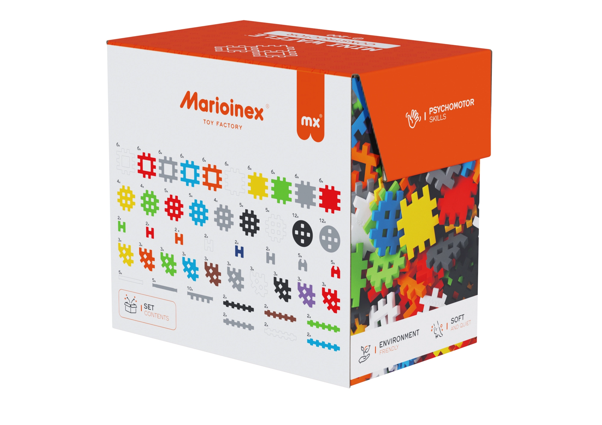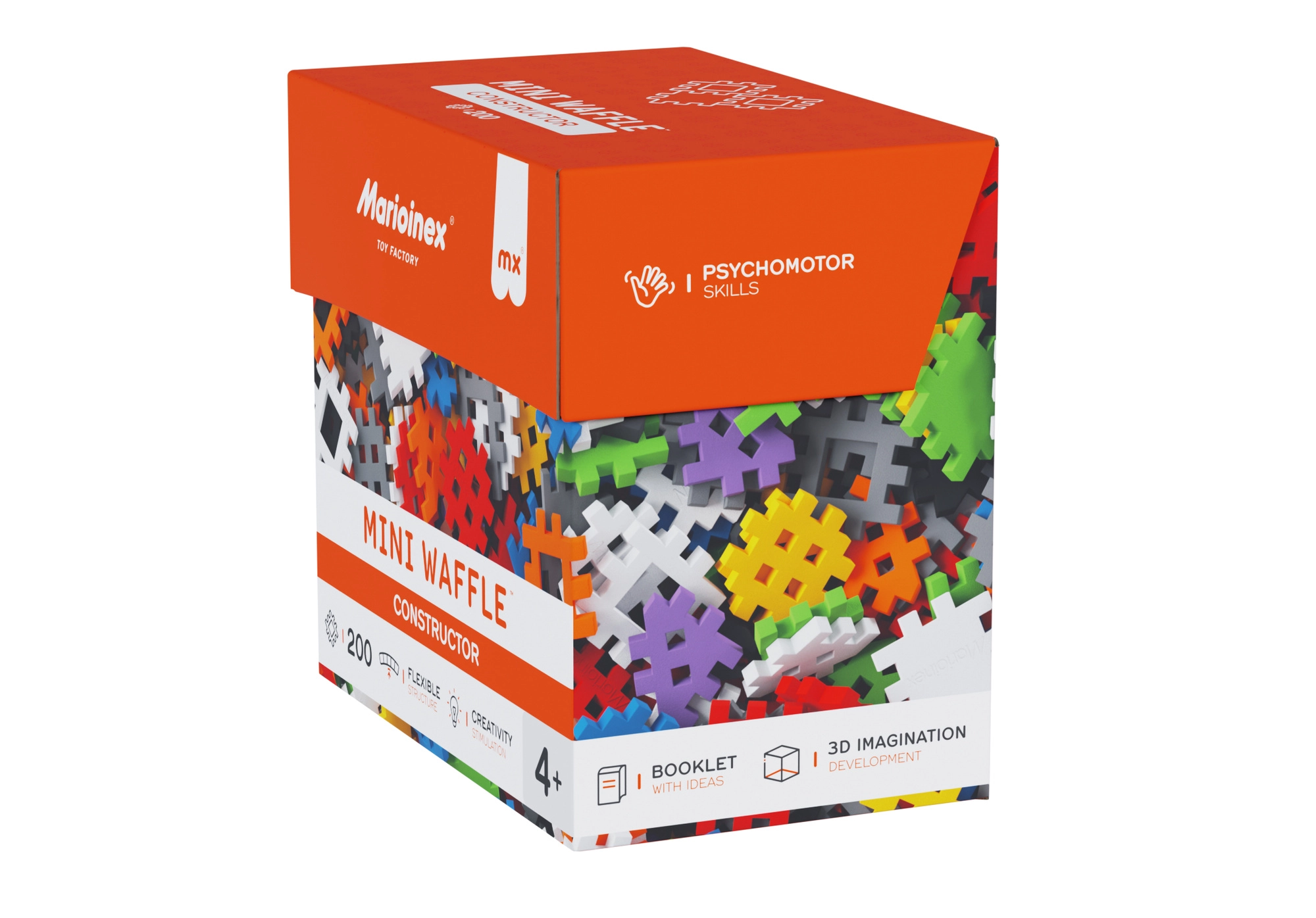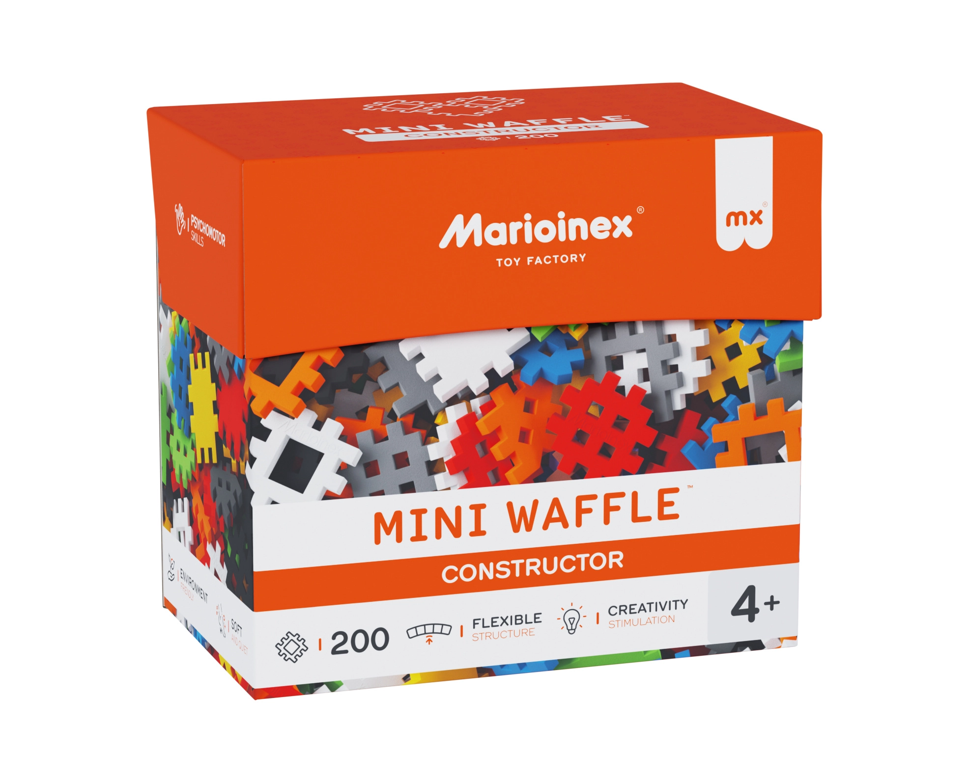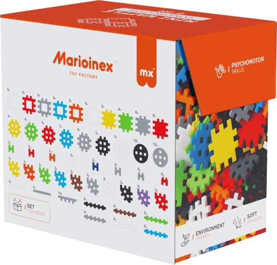 Setul de construcție MARIOINEX Mini Waffle Constructor oferă copiilor distracție și învățare într-un singur produs. Datorită formei unice a pieselor, modelele se asamblează ușor și stau bine fixate, dar pot fi la fel de simplu dezasamblate. Pachetul include un booklet inspirațional cu idei, care ajută la primele construcții și stimulează imaginația mai departe.