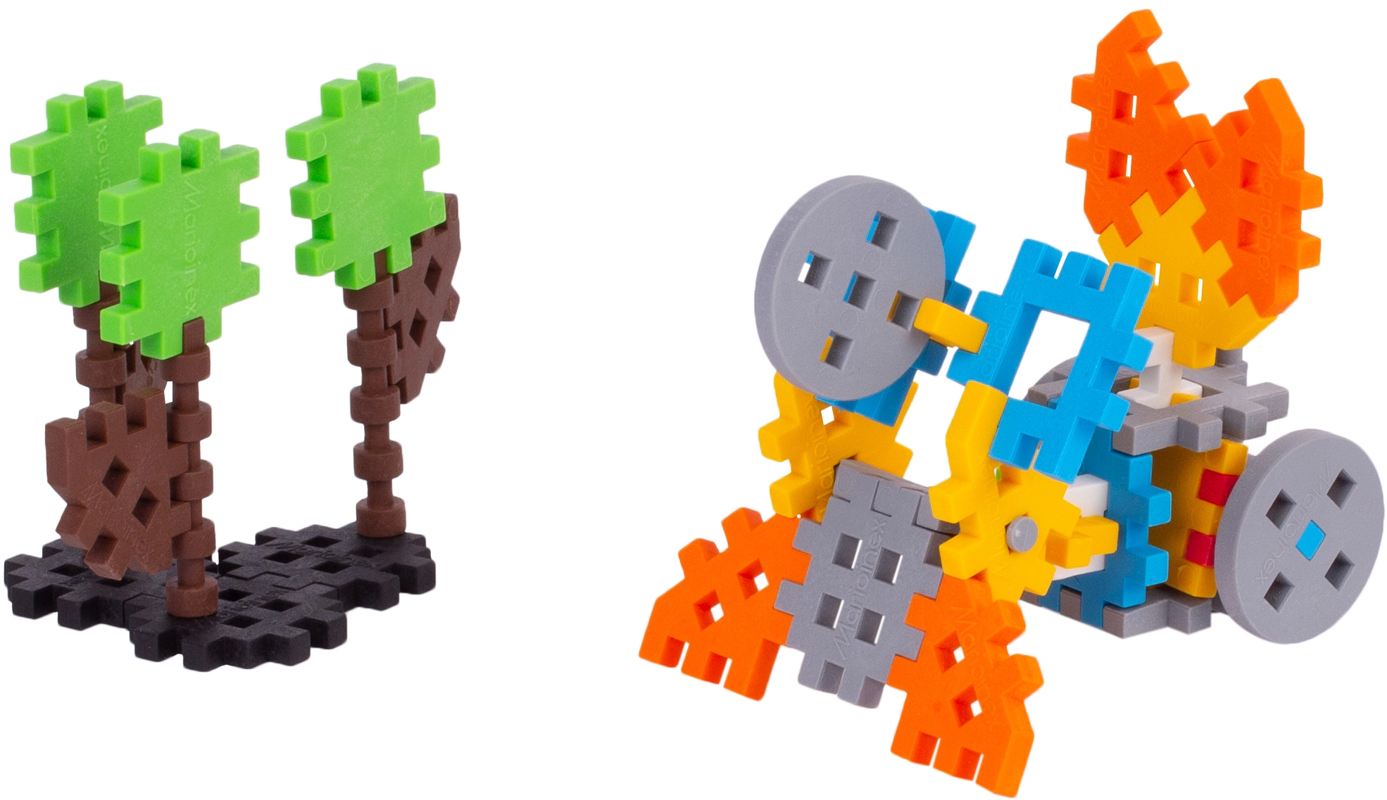 Construiți modele colorate, de la păsări la mici utilaje și vehicule. Sistemul modular susține imaginația și răbdarea în timpul asamblării.