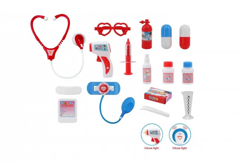 Setul include instrumente esențiale, precum stetoscop cu sunetul bătăilor inimii, termometru cu lumină, seringă, ochelari, oglindă și cutiuțe cu „medicamente” (reproduceri). Toate sunt depozitate într-o geantă solidă și portabilă, care servește ca spațiu de stocare practic.