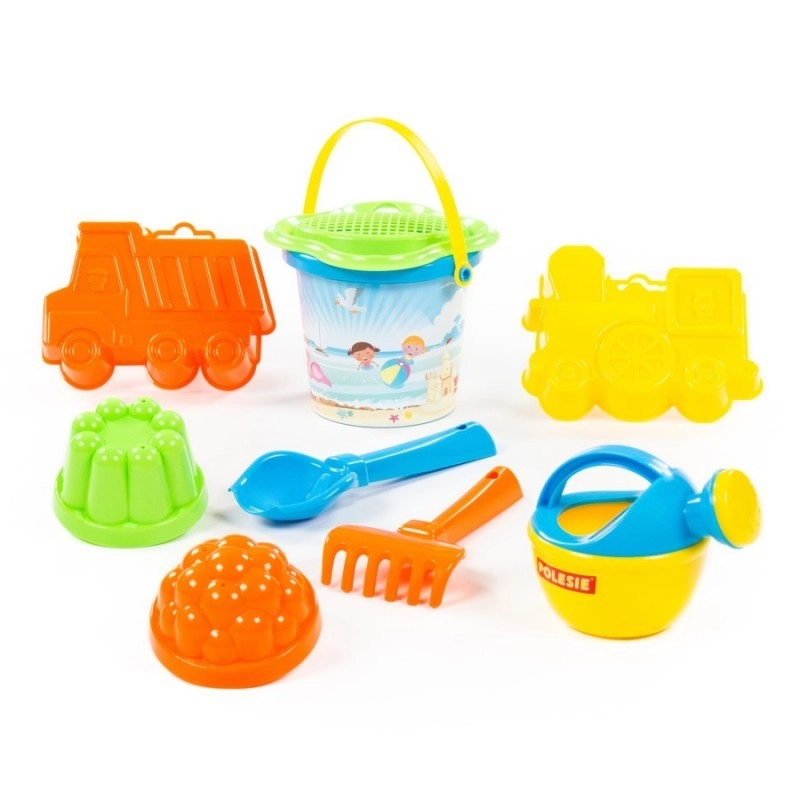 - Conținutul setului: găletușă mică, sită–floare, lopățică, greblă, stropitoare mică, 4 forme (diferite modele)