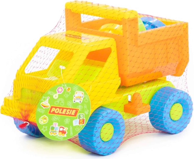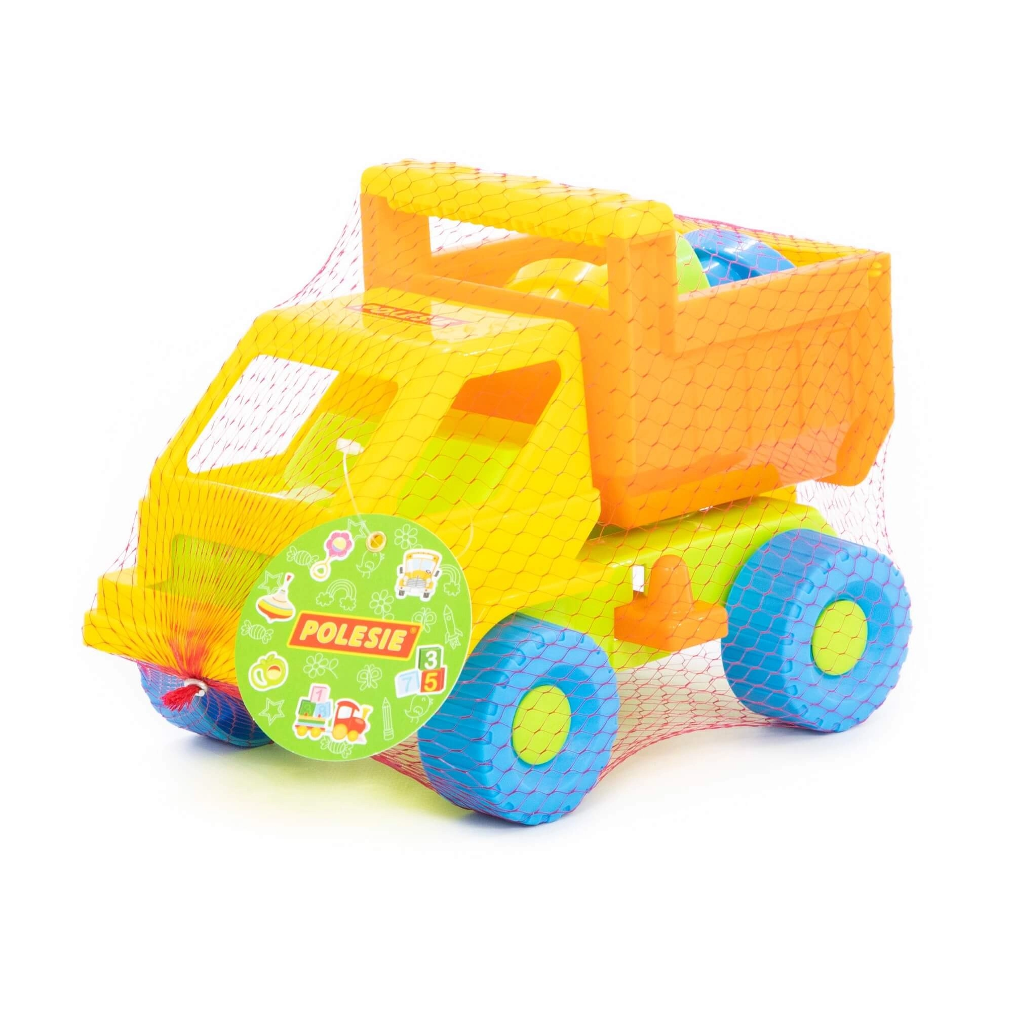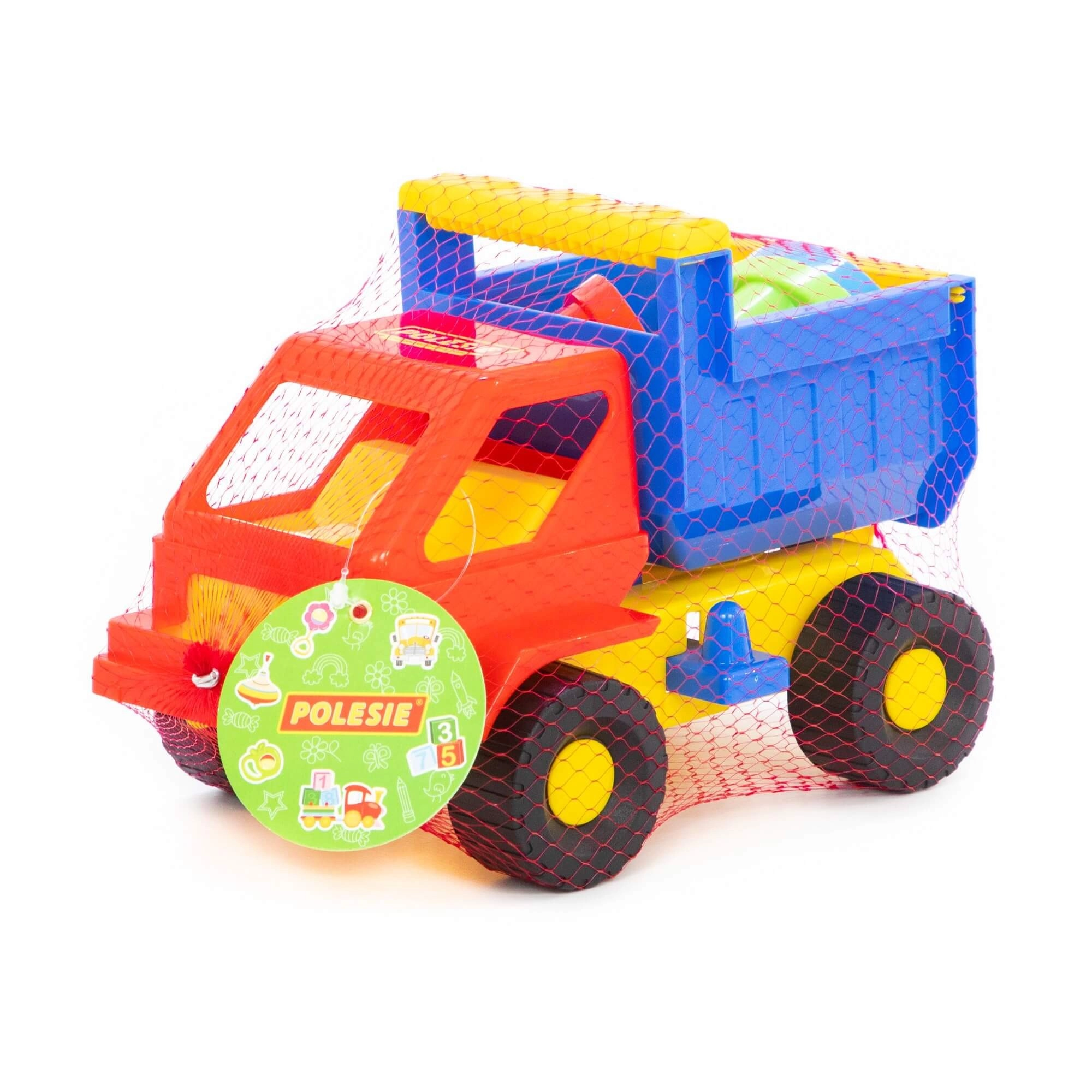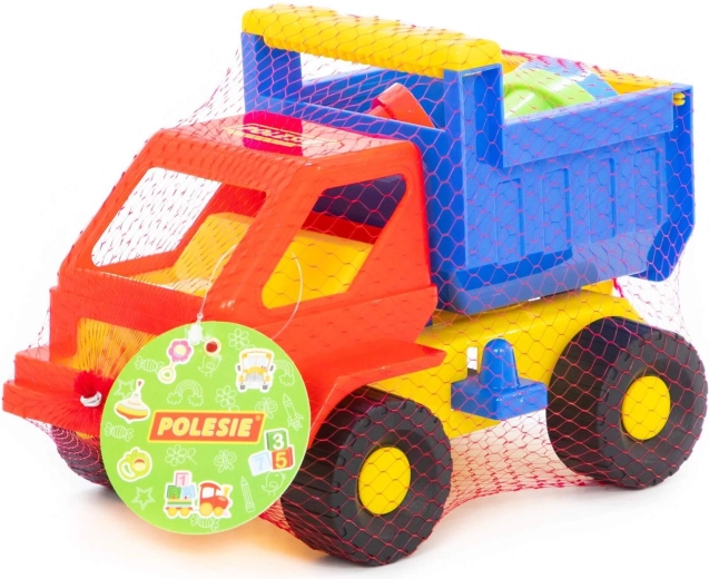 Camionul colorat transportă ușor nisipul, iar datorită benei rabatabile permite descărcarea rapidă a încărcăturii. Perfect pentru jocuri realiste pe șantier.