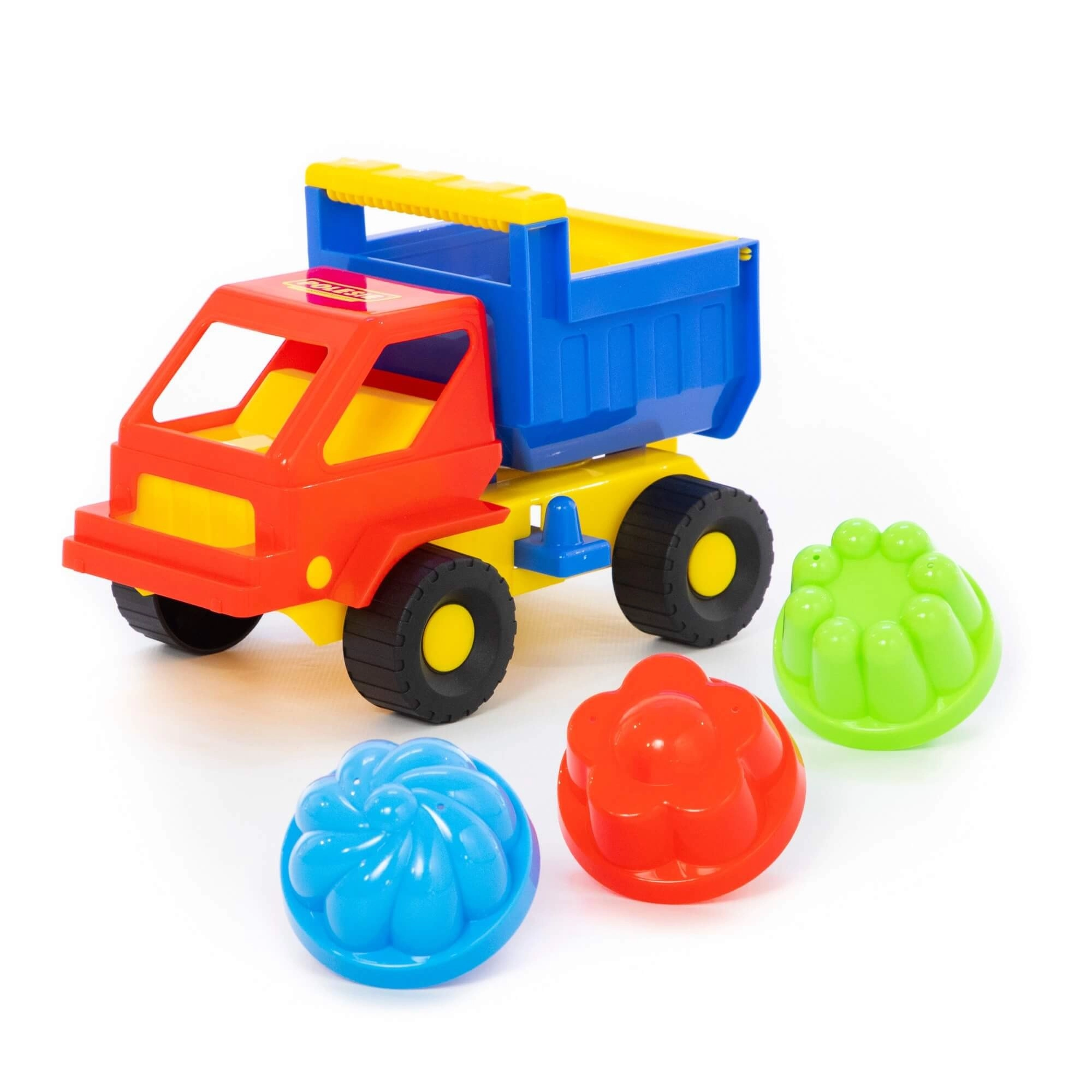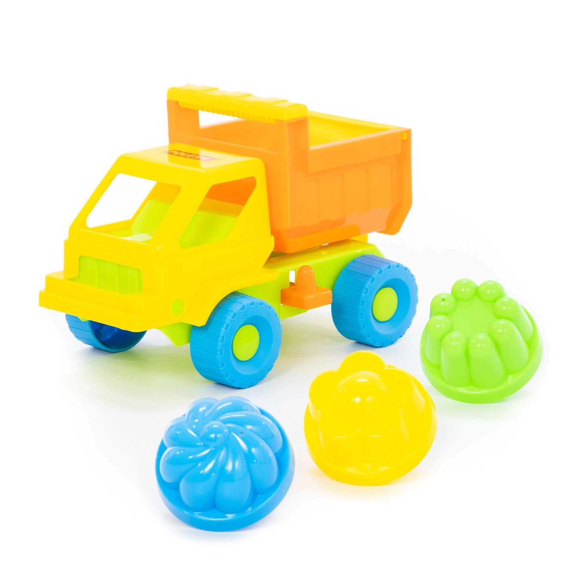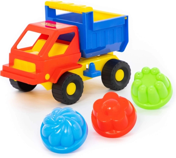 - Mașinuță cu benă + 3 forme pentru nisip