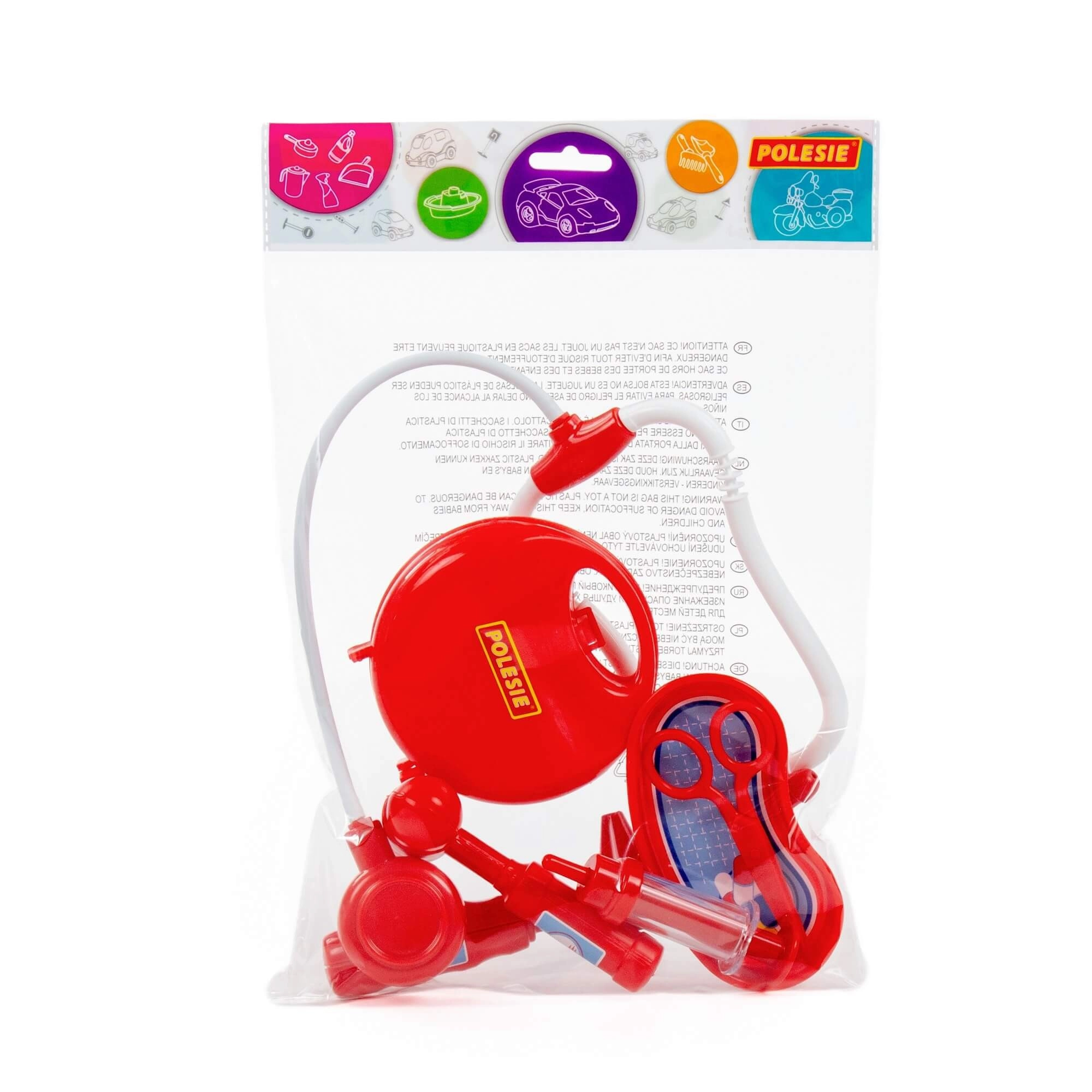 Acest set de doctor pentru copii este ideal pentru micii doctori și doctorițe. Datorită instrumentelor din plastic ușoare și rezistente, copiii pot încerca în siguranță cum este să aibă grijă de pacienți, să asculte „bătăile inimii” cu stetoscopul, să „vaccineze” cu seringa sau să verifice urechile cu otoscopul.