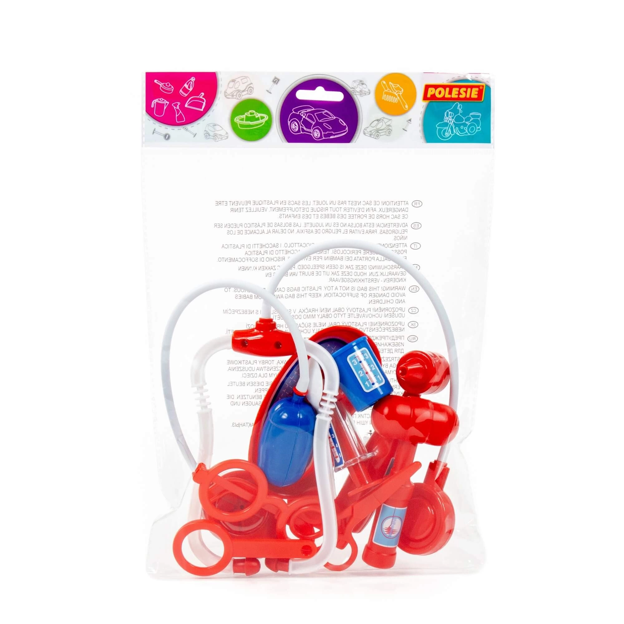 Set distractiv pentru micii medici, care include 11 piese de instrumente medicale, cu care copiii se pot juca de-a doctorul și pot îngriji pacienții. Setul conține accesorii esențiale precum stetoscop, injecție, termometru și alte instrumente care susțin imaginația, empatia și abilitățile sociale în jocul de grup.