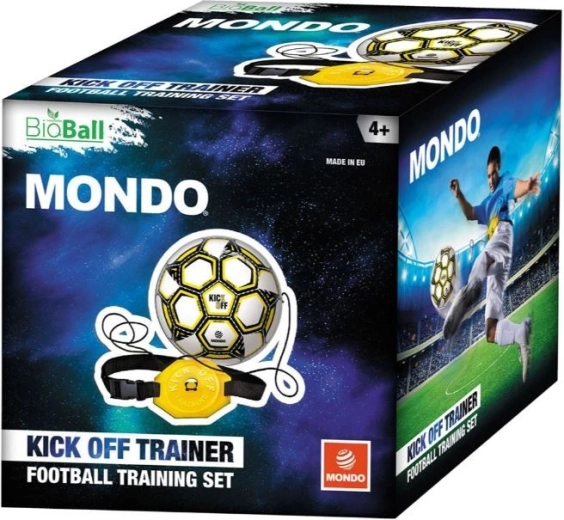 Kick Off Trainer este un accesoriu practic pentru antrenament individual de fotbal. Mingea, cu diametrul de aproximativ 23 cm, este atașată de o coardă elastică cu lungimea de aproximativ 110 cm și de o centură cu cataramă, datorită căreia se întoarce la jucător după fiecare șut. Antrenează-ți tehnica, precizia și lucrul cu mingea fără a avea nevoie de un partener.
