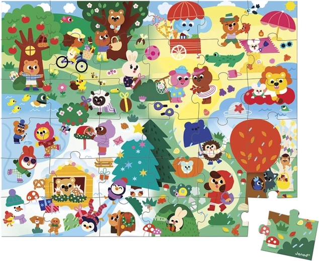 Descoperă farmecul unui puzzle cu tema celor patru anotimpuri de la JANOD. Ambalajul practic într-o valiză rezistentă este ideal atât pentru acasă, cât și pentru călătorii, iar în set este inclus și un poster-model pentru asamblare mai ușoară. Puzzle-ul, cu dimensiunea de aproximativ 50 × 40 cm și 36 de piese, dezvoltă logica, răbdarea și motricitatea fină.