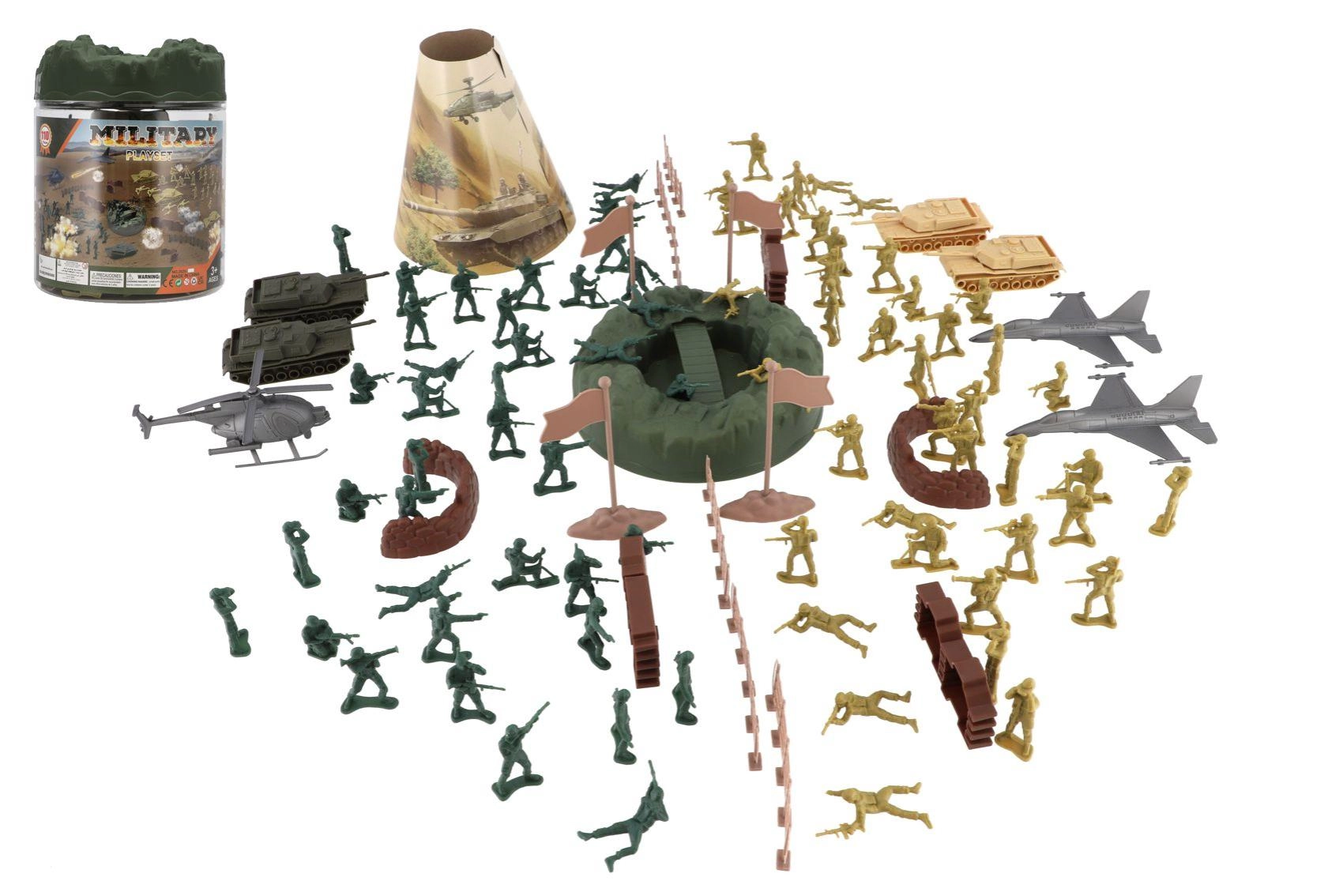 Setul militar extins oferă tot ce au nevoie copiii pentru a crea scene de luptă palpitante. Conține soldăței din plastic în mai multe poziții, tancuri, avioane și elicoptere, precum și garduri, baricade, stegulețe și elemente de teren. Datorită dotării bogate, se pot construi cu ușurință baze, planifica înaintarea și dezvolta strategii.