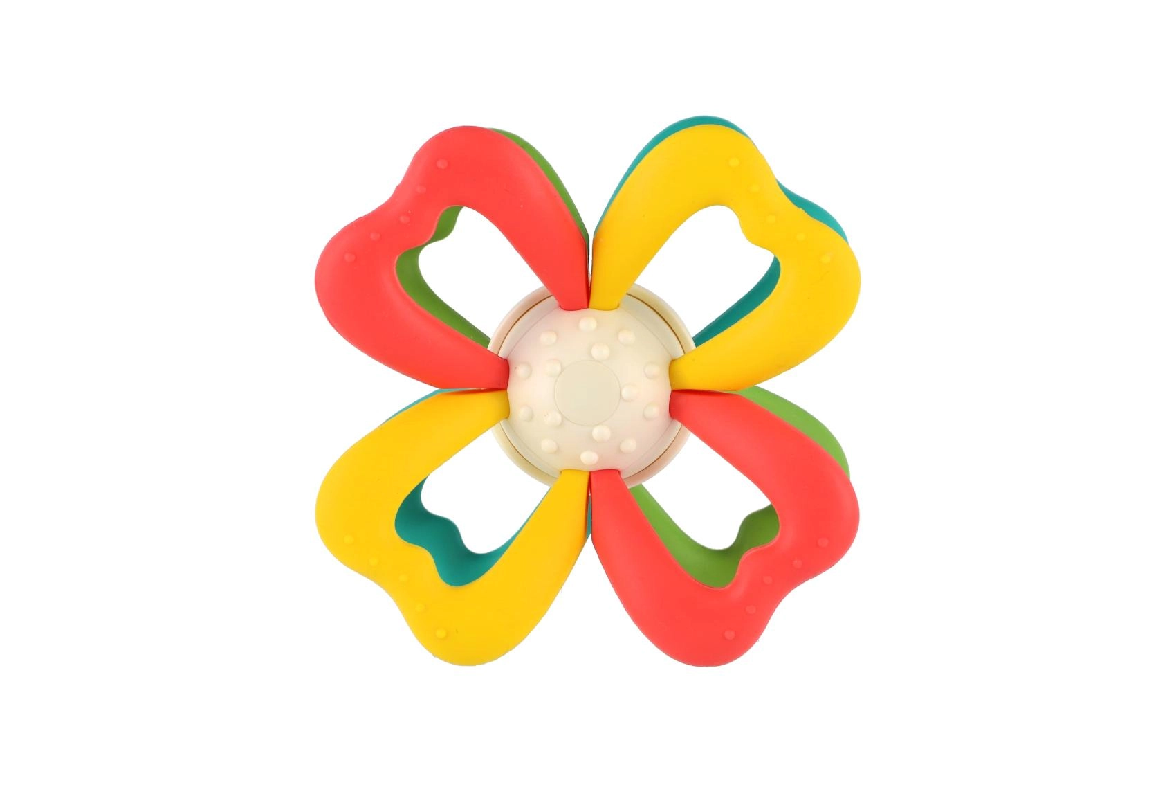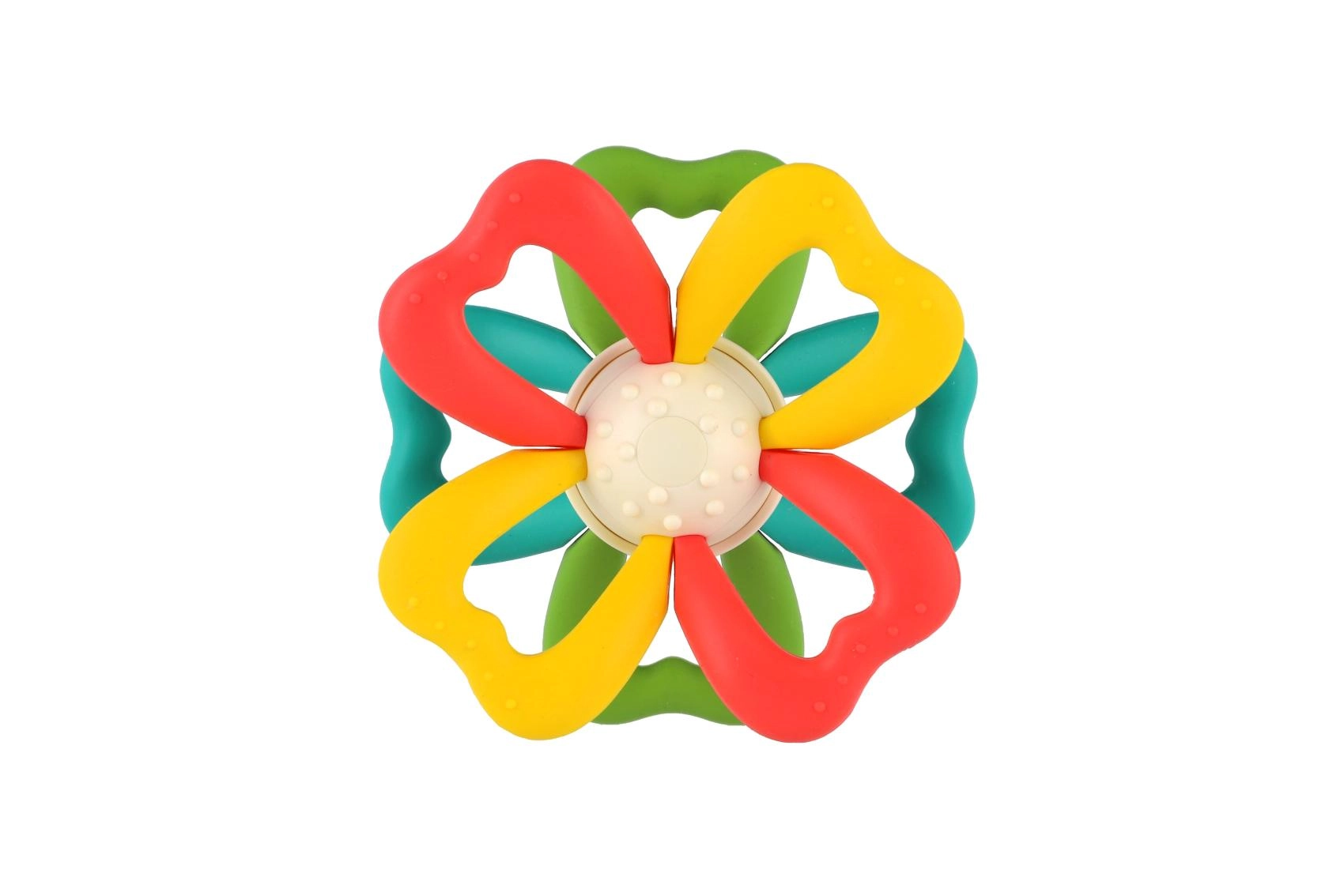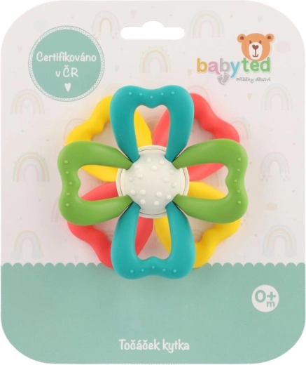 Jucărie de dentiție ușoară pentru copii, în formă de floare, cu petale moi din silicon, care se potrivește perfect în mâinile micuțe. Texturile fine stimulează simțul tactil și prinderea, iar miezul rotativ dezvoltă coordonarea mână–ochi. Combinația de silicon și plastic este sigură pentru perioada de erupție a dinților. Certificată în Cehia.