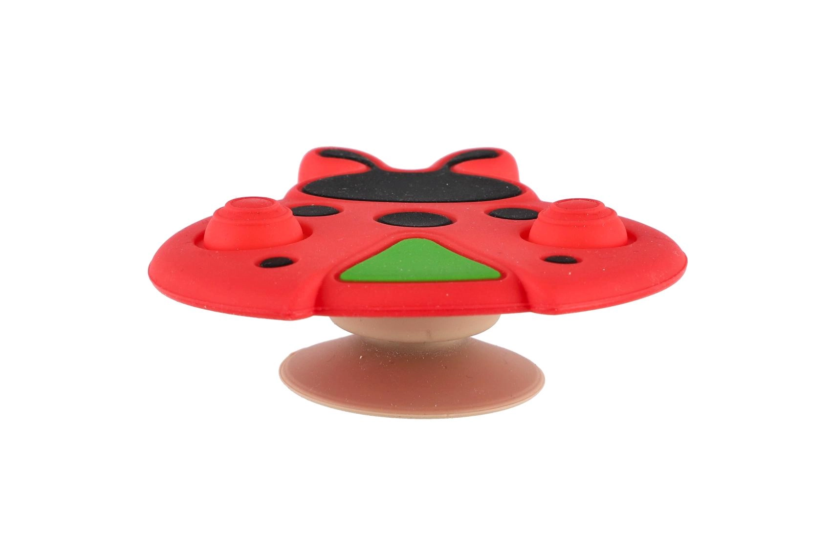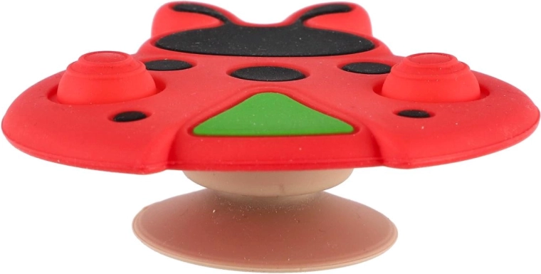 Această jucărie senzorială în formă de buburuză este ideală pentru primele descoperiri ale lumii. Datorită combinației de silicon moale și plastic solid, este plăcută la atingere, sigură și rezistă utilizării zilnice. Ventuza permite fixarea ușoară a jucăriei pe masă, scaunul de hrană sau cădiță, astfel încât rămâne pe loc și copilul o poate explora confortabil.