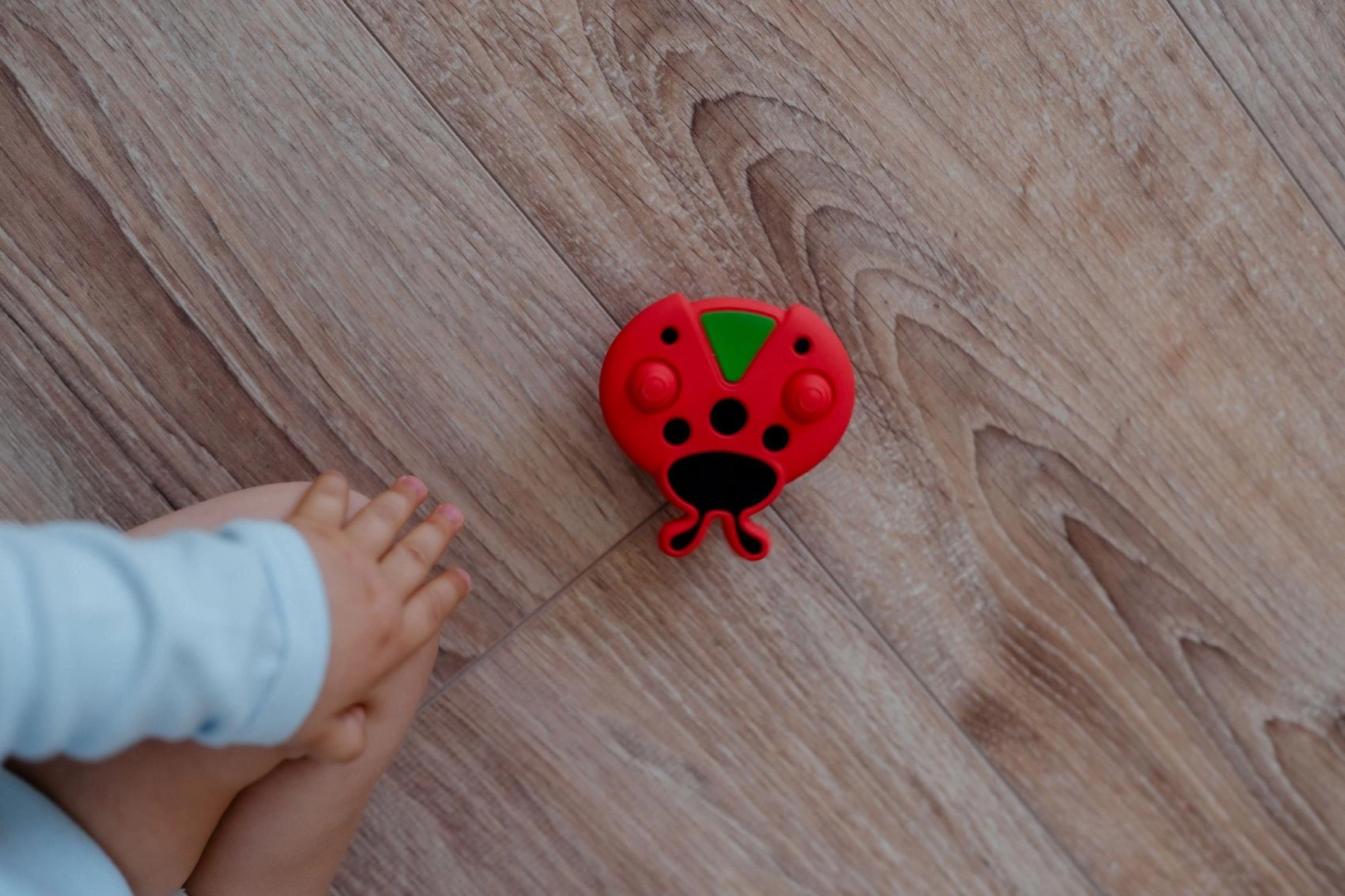 Fixați buburuza pe o suprafață netedă și lăsați copilul să exploreze în siguranță, fără să cadă mereu pe podea.