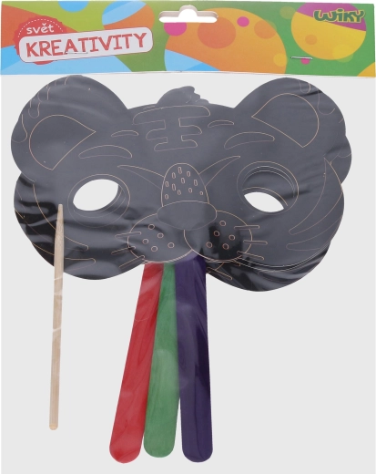 Măștile răzuibile sunt o alegere grozavă pentru micii creatori. Este suficient să folosiți instrumentul de răzuire inclus și să îndepărtați treptat stratul de la suprafață pentru a dezvălui culorile vii dedesubt. Fiecare mască se transformă astfel într-o piesă unică și colorată, pe care copiii o pot purta cu mândrie sau o pot expune.