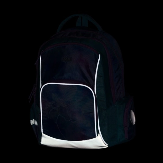 Compartimentarea interioară inteligentă cu două compartimente principale, buzunar frontal și buzunare laterale (deschis și cu fermoar) facilitează depozitarea ordonată a manualelor, caietelor și gustării. Baza rigidă impermeabilă protejează conținutul și împotriva murdăririi. Cârligele practice scurtează bretelele lungi, iar elementele reflectorizante sporesc vizibilitatea și siguranța pe drumul spre școală.
