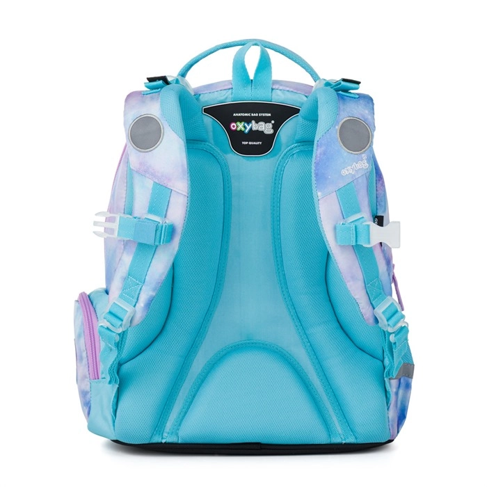 Rucsacul școlar stilat Oxy Go Unicorn cu motiv galactic pastel atrage privirea de la prima vedere. Oferă spate anatomic format și respirabil, bretele căptușite și reglabile, un spațiu generos de 22 l cu numeroase buzunare și bază rigidă impermeabilă. Nu lipsesc elementele reflectorizante pentru siguranță și organizarea inteligentă pentru purtarea zilnică la școală.