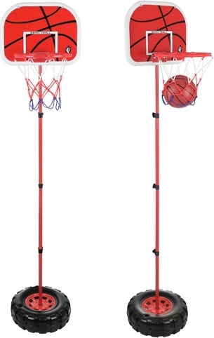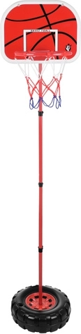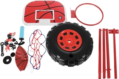 Coșul este echipat cu inel din fier și un panou solid cu dimensiunea de 38 × 29,5 cm, ceea ce crește rezistența întregii structuri la utilizare frecventă. În pachet găsiți tot ce aveți nevoie – minge, pompa manuală, elemente de montaj și unelte – jocul poate începe imediat după o asamblare rapidă și ușoară.