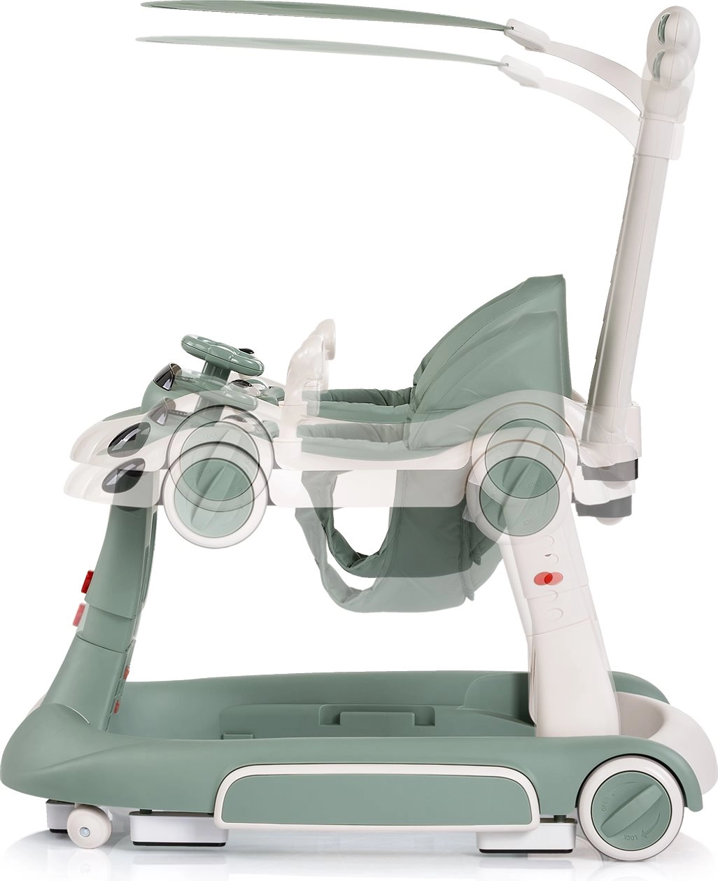 Mersul interactiv 5în1 este un ajutor bine gândit pentru învățarea în siguranță a mersului și distracția zilnică. Datorită construcției stabile și opțiunii de legănare ușoară și sărit, întărește în mod natural mușchii, coordonarea și echilibrul. Centrul de joacă cu lumini, butoane muzicale și jucării mobile susține dezvoltarea senzorială și îl distrează pe cel mic minute în șir.