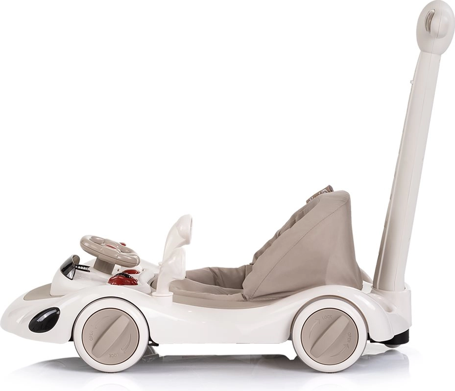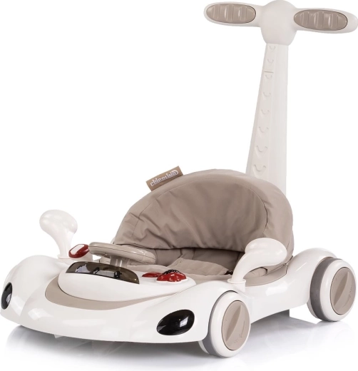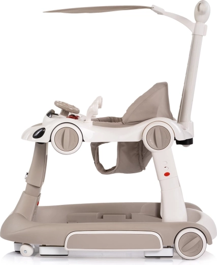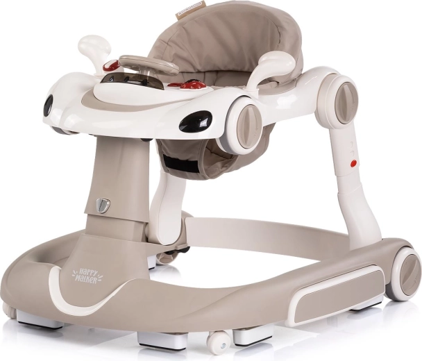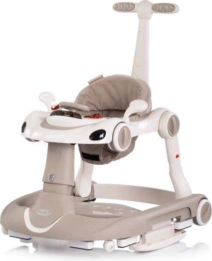 Premergătorul interactiv 5‑în‑1 Happy Walker, în elegantul bej, este conceput pentru o învățare a mersului confortabilă și sigură. Baza lată și stabilă, roțile de calitate cu opțiuni de blocare și reglare a vitezei și scaunul moale căptușit oferă siguranță și confort. Datorită mânerului pentru părinte poți ghida copilul în siguranță, iar capotina oferă protecție împotriva soarelui.