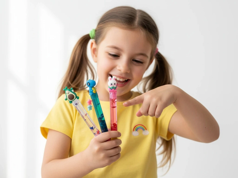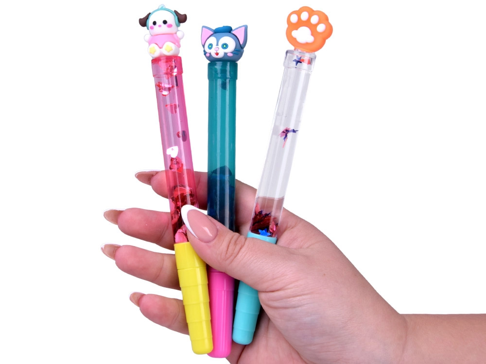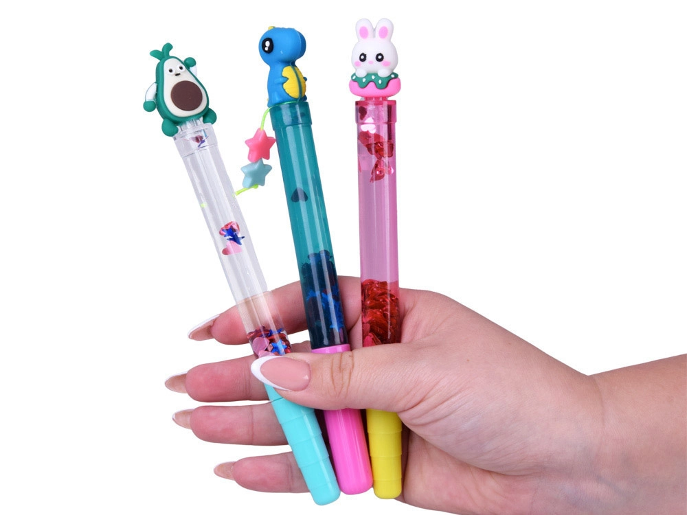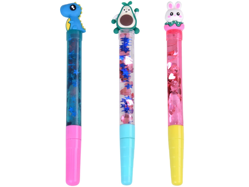 Creează-ți propriile pixuri cu gel sclipitoare cu confetti plutitoare și topper-e drăgălașe. Setul conține totul pentru 3 pixuri unice – corpuri transparente, rezerve colorate, sclipici, mărgele și figurine din cauciuc. O alegere grozavă pentru creațiile copiilor, dezvoltarea motricității fine și distracție la școală sau la petreceri.