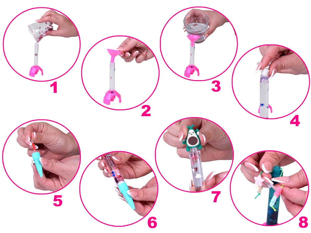 - decorarea corpului pixului cu apă, sclipici și confetti