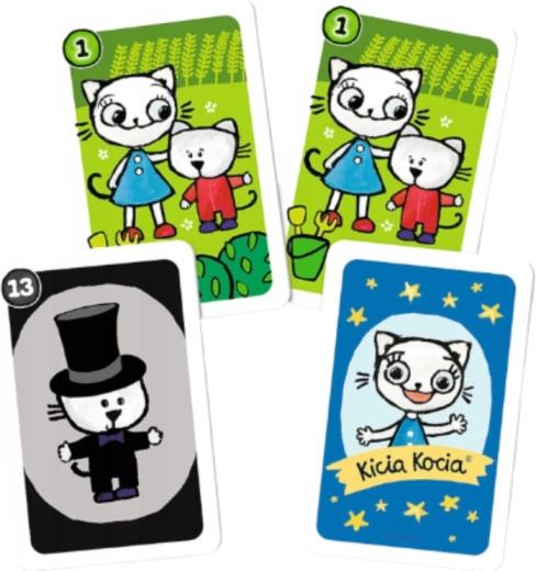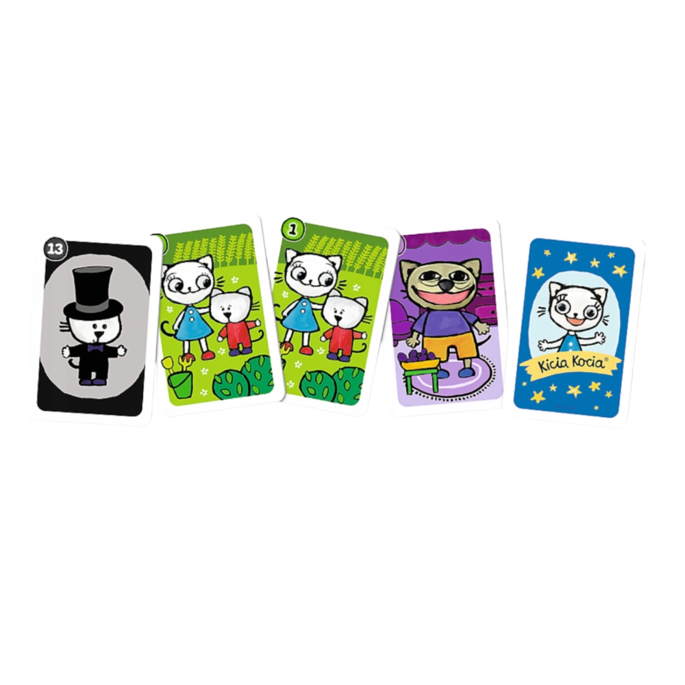 Setul vesel, ilustrat, cu motive KICIA KOCIA este conceput pentru cei mai mici jucători – atât pentru începători, cât și pentru copiii care cunosc deja bine regulile. Datorită formatului ușor și compact, îl puteți lua ușor în călătorii, în vizită sau la întâlniri cu prietenii.